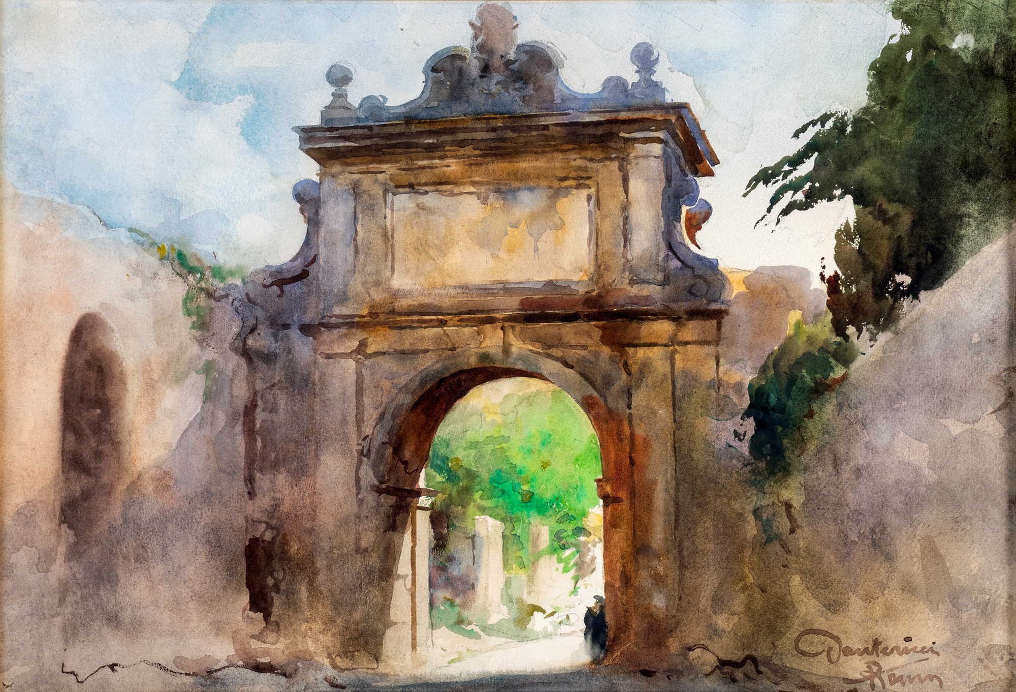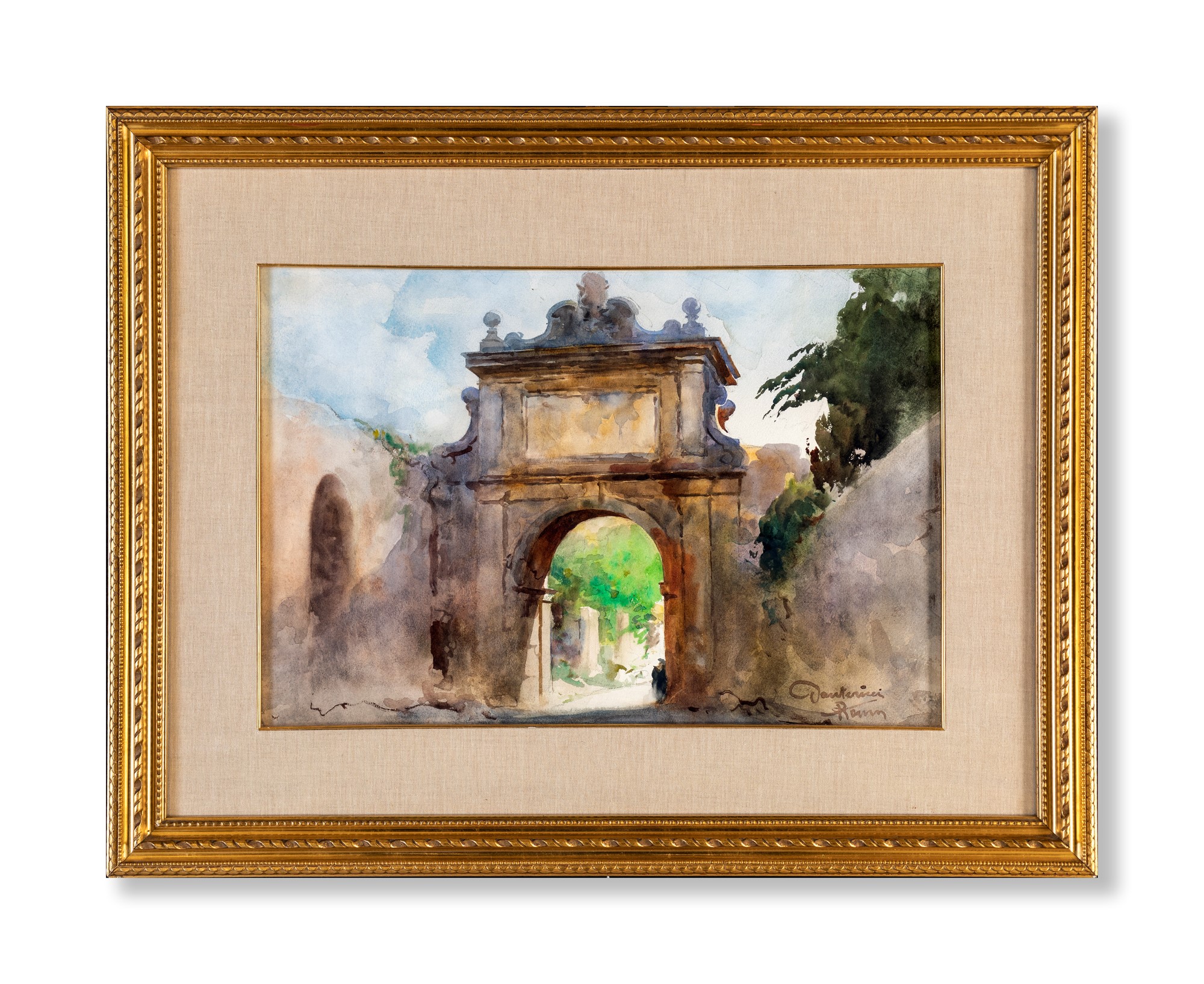 Dante Ricci Serra San Quirico 1879-Roma 1967 Veduta di Roma con arco Firmato in basso a destra Dante Ricci Roma acquerello su carta cm 48x70