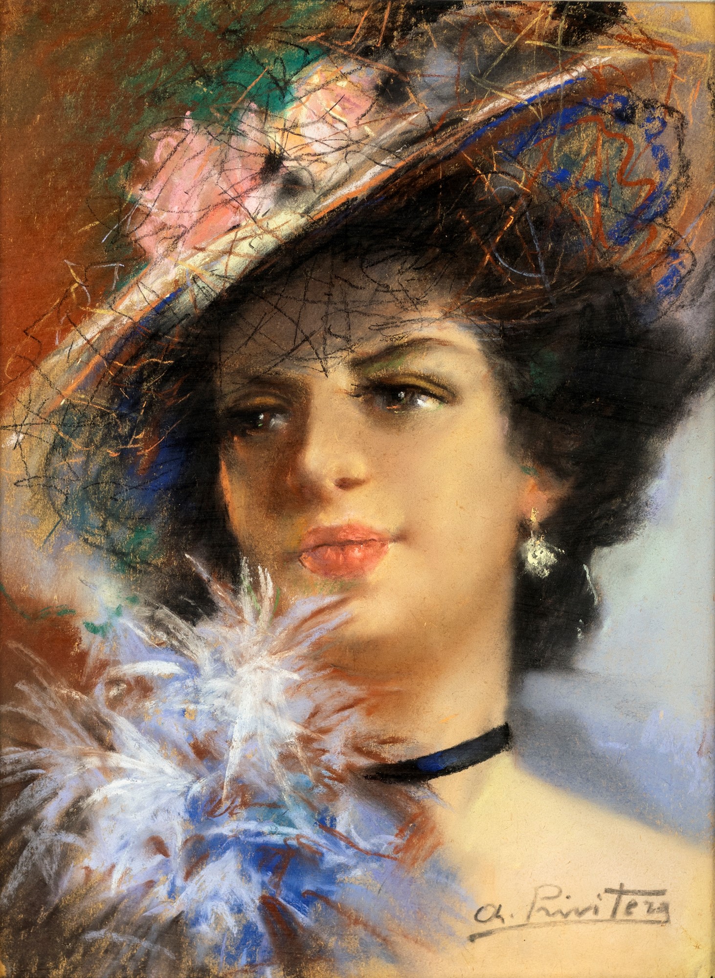 Antonio Privitera 1910 Ritratto di donna Firmato in basso a destra A. Privitera pastello su carta cm 40x30