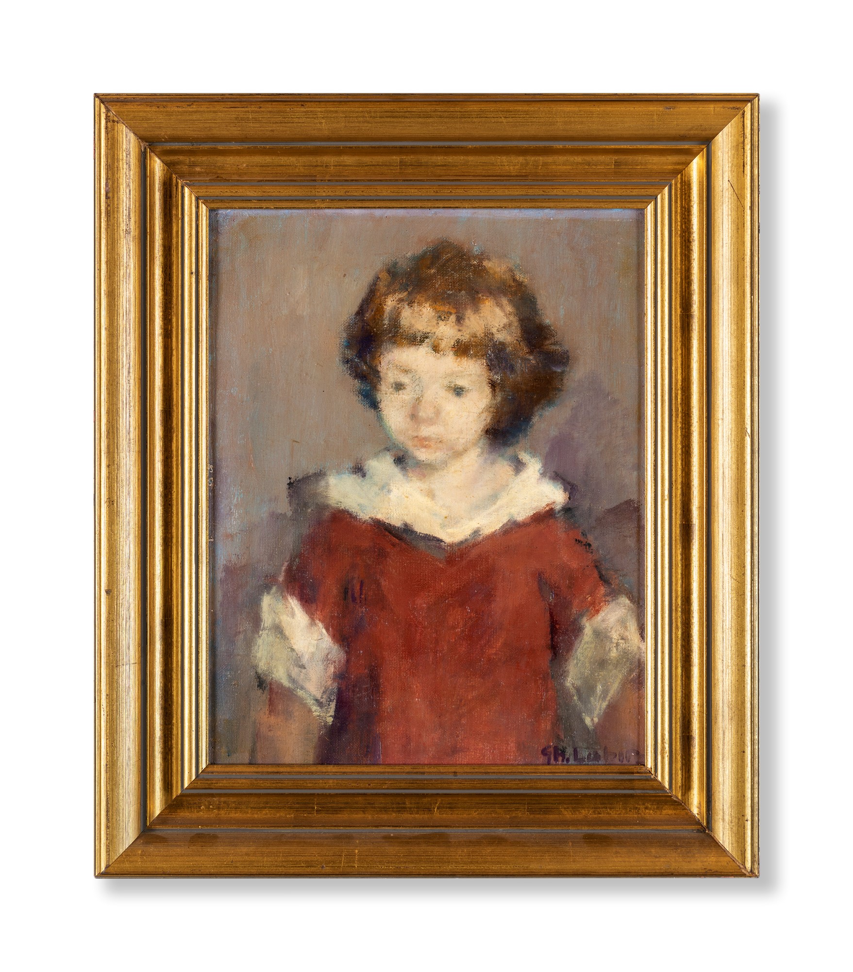 Gheorghe Labin Pufe?ti 1907-Gala?i 1977 Ritratto di bimba in rosso (Ana Maria)