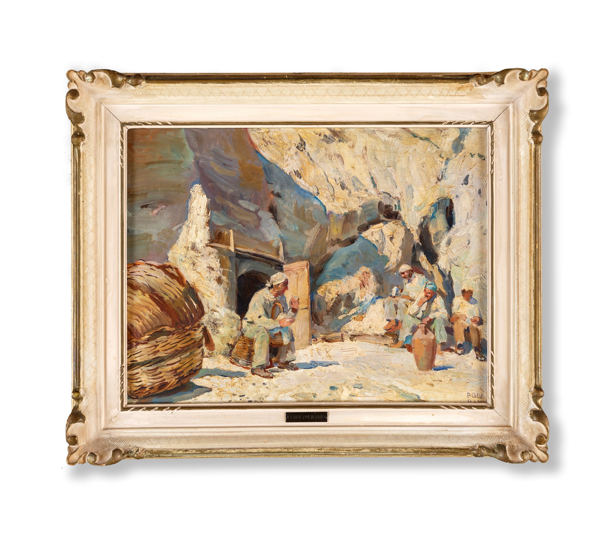 Luigi Polverini Roma 1903-Roma 1960 Minatori a riposo Firmato in basso a destra: Polverini. olio su tela cm 35x45