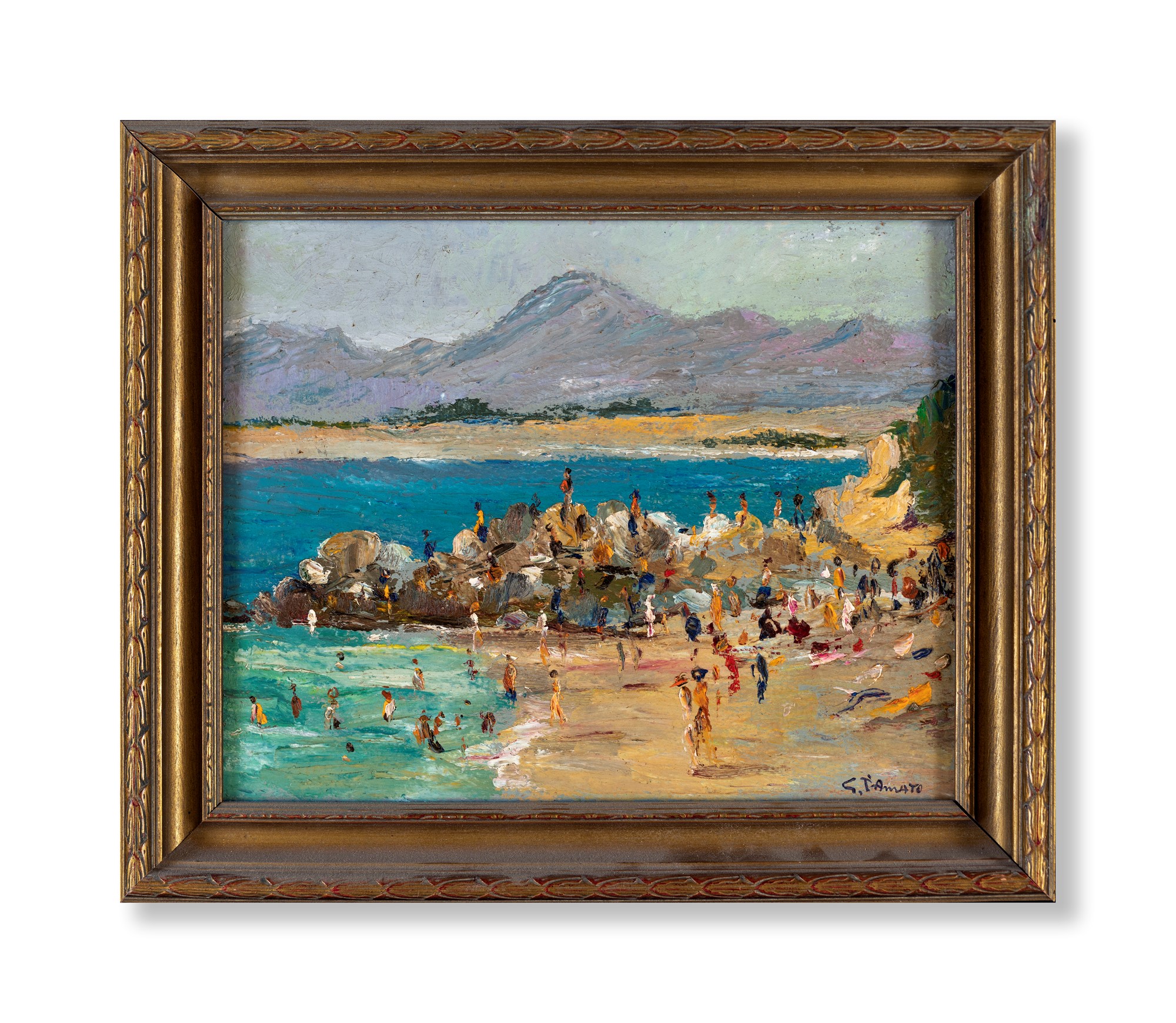 Gennaro D'Amato Napoli 1857-Napoli 1947 Spiaggia Firmato in basso a destra G. D'Amato olio su tavola cm 24x30