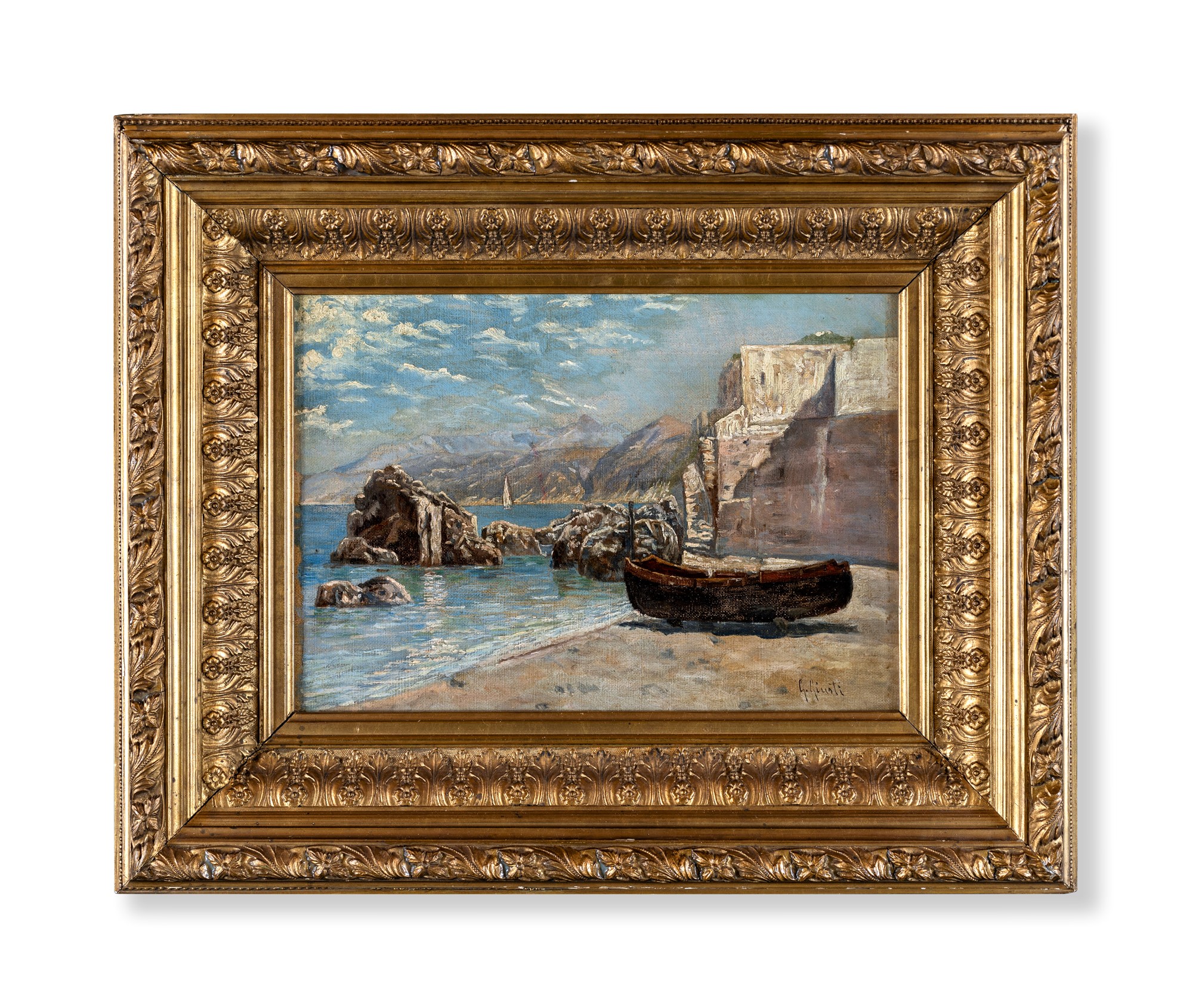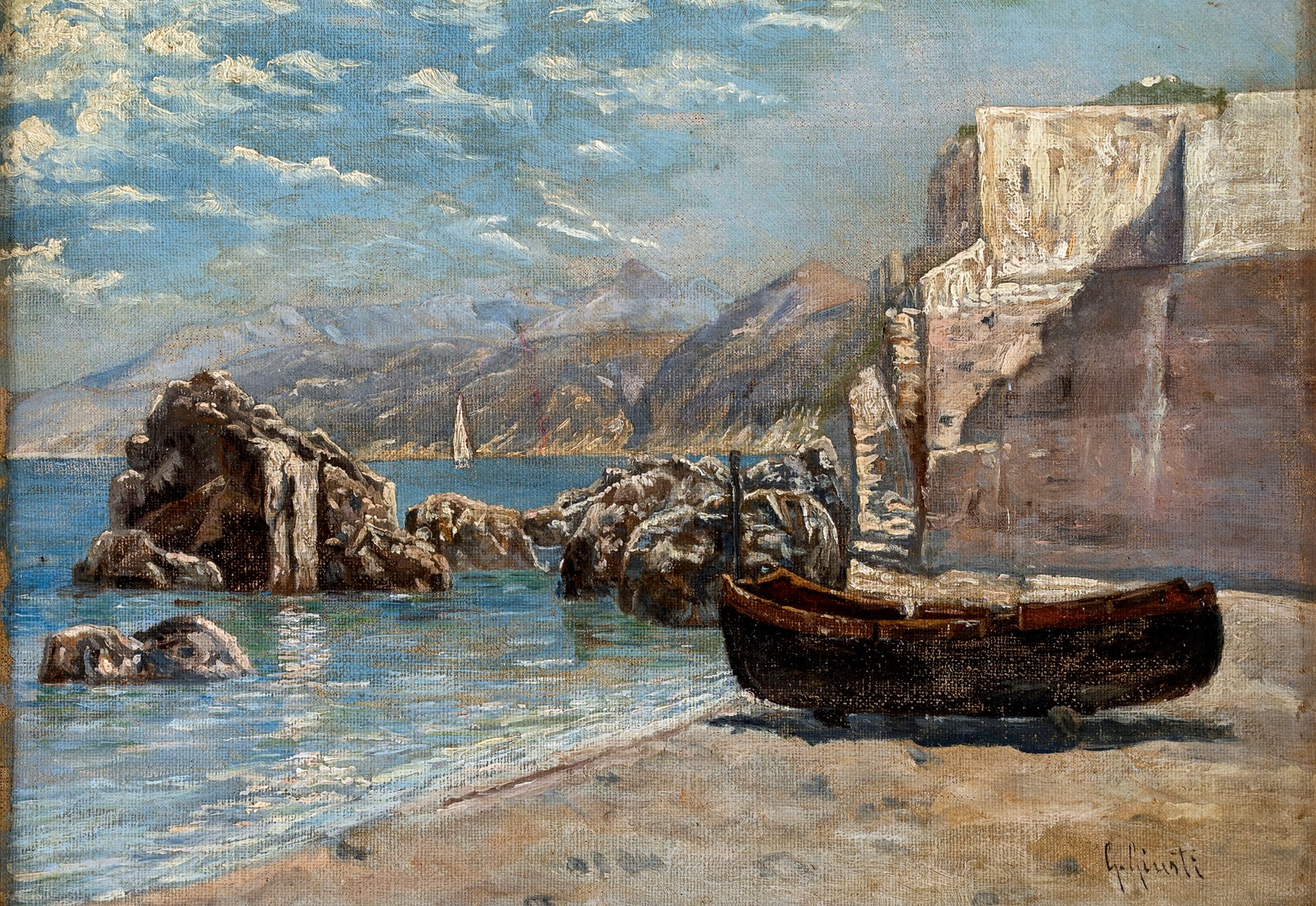 Guglielmo Giusti Napoli 1824-Napoli 1915 Marina Firmato G.Giusti in basso a destra olio su tela cm 24x34