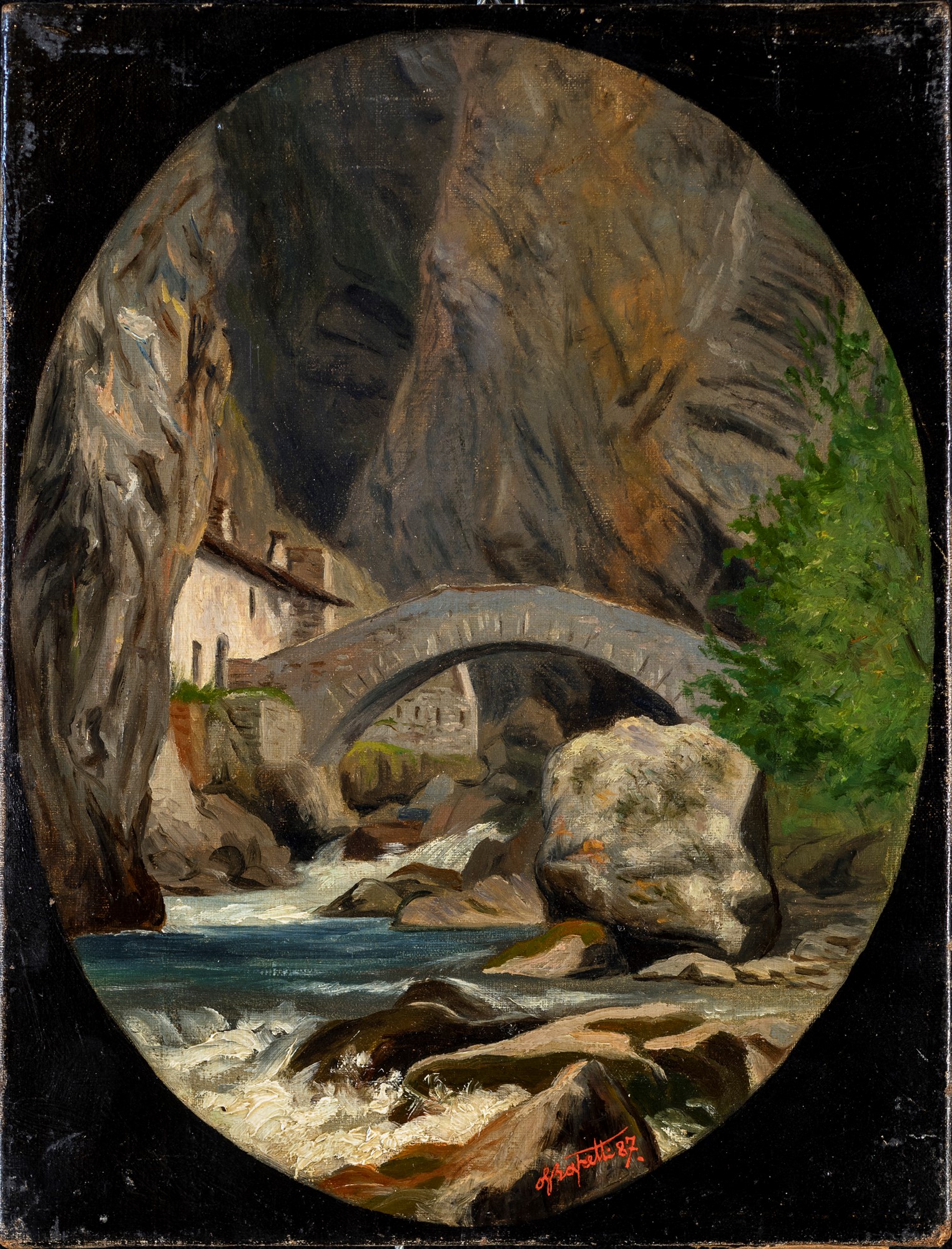 Camillo Rapetti Milano 1859-Milano 1929 Paesaggio montano Pré St. Didier. Firmato Rapetti in basso a destra olio su tela cm 28x22