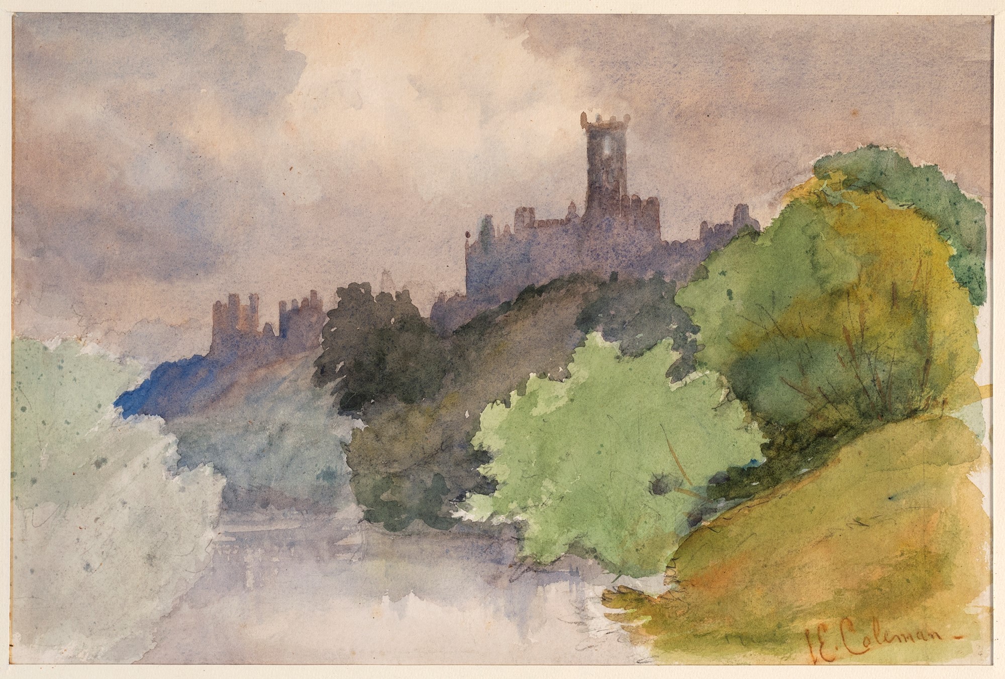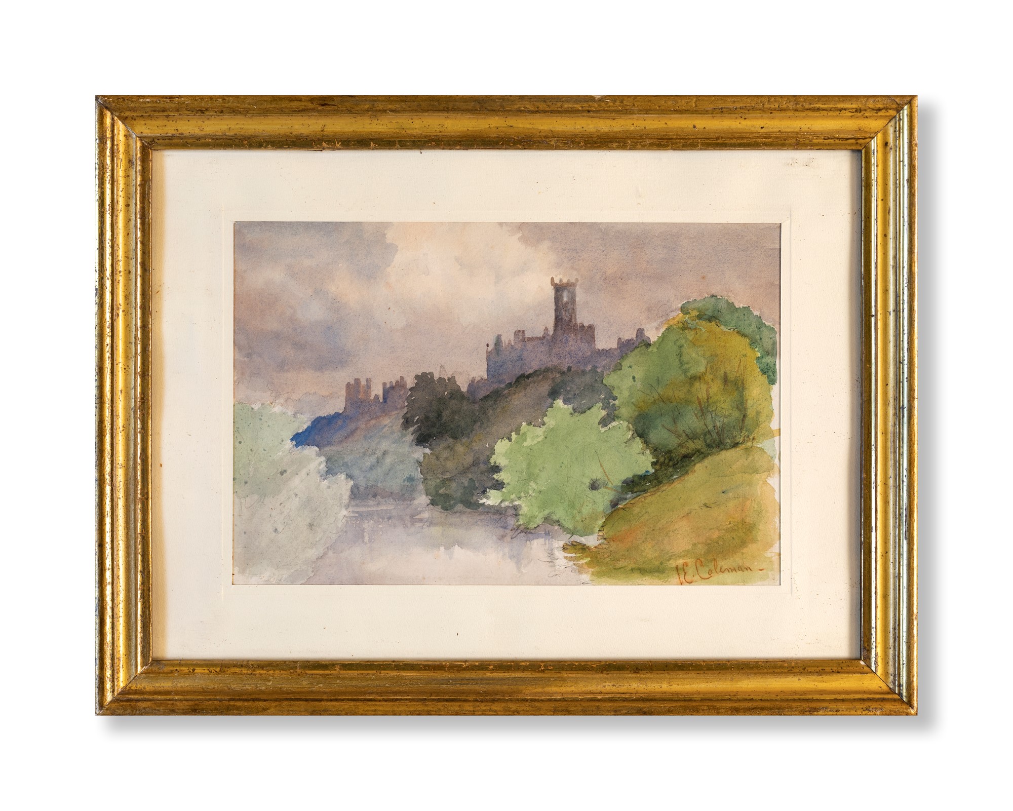Enrico Coleman Roma 1846-Roma 1911 Paesaggio con castello Firmato E,Coleman in basso a destra. acquerelli su carta cm 22,5x34.5