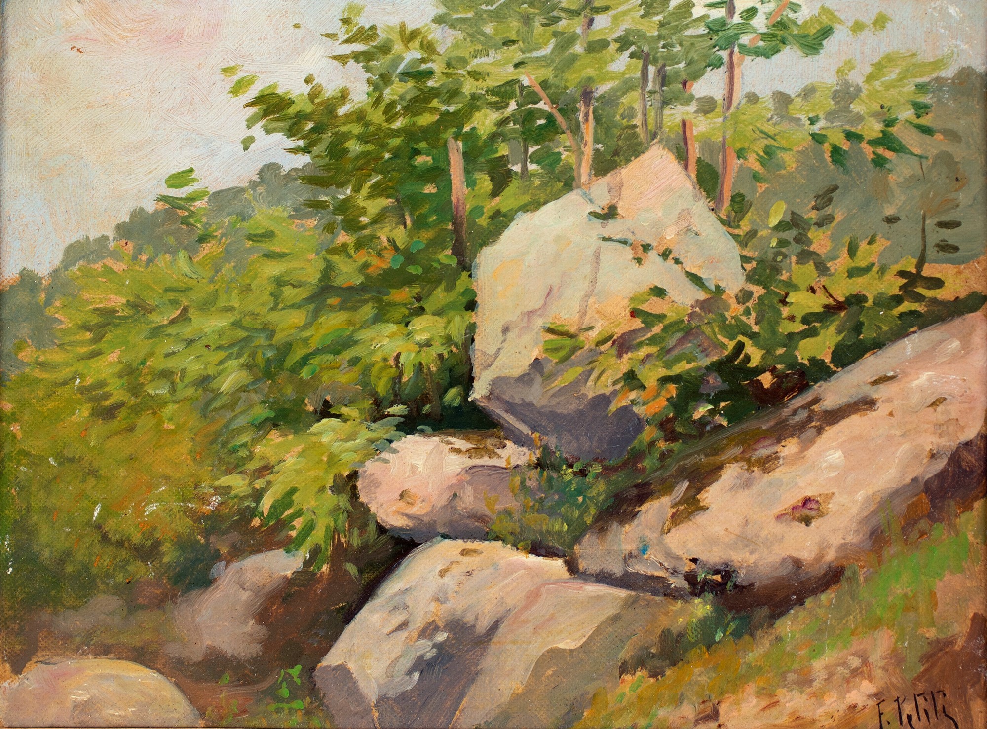 Filiberto Petiti Torino 1845-Roma 1924 Bosco Firmato in basso a destra F. Petiti olio su cartone cm 19X26