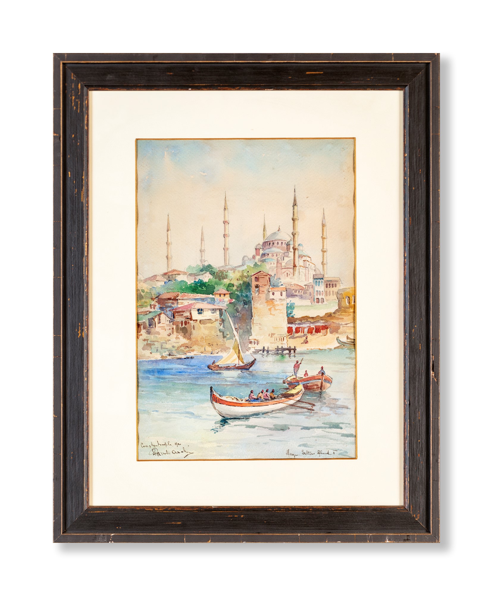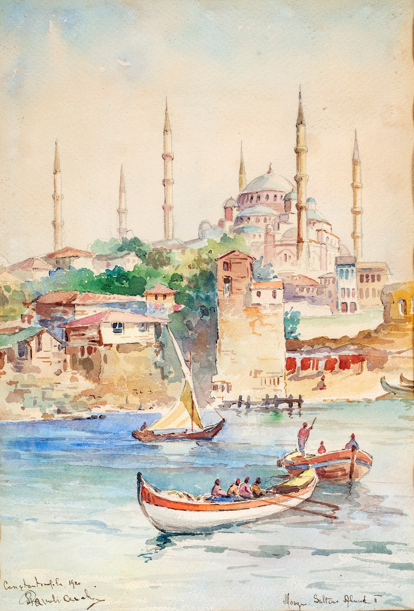 Pittore Inglese della fine del XIX secolo Veduta di Santa Sofia Iscritto Costantinopoli 1920 acquerelli su carta cm 40x28