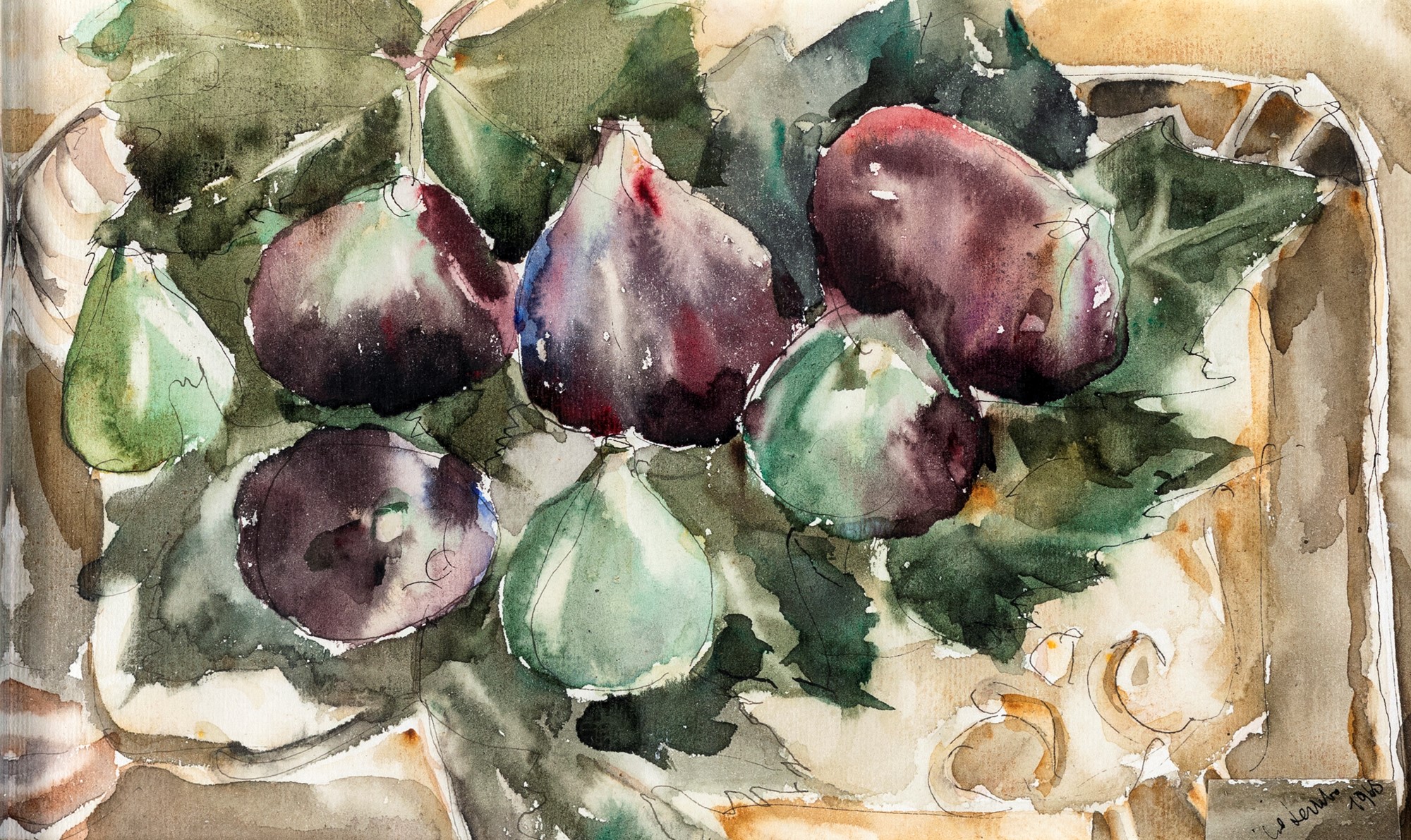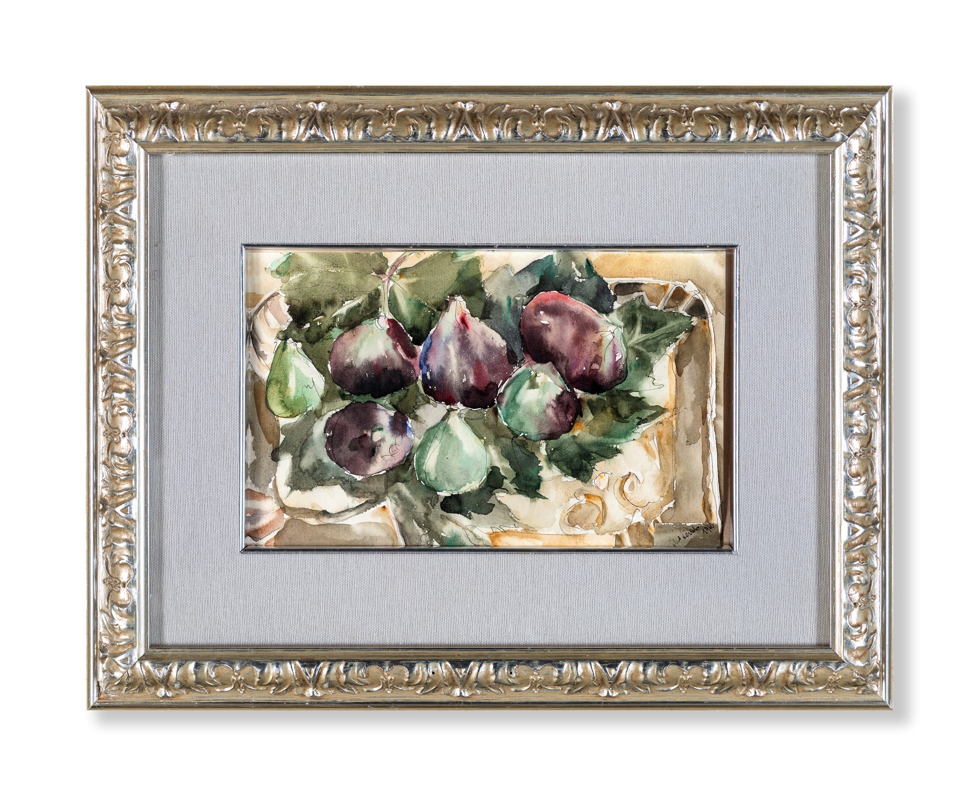 Pittore del XX secolo Natura morta di fichi Firma non decifrabile in basso a destra e data 1905
