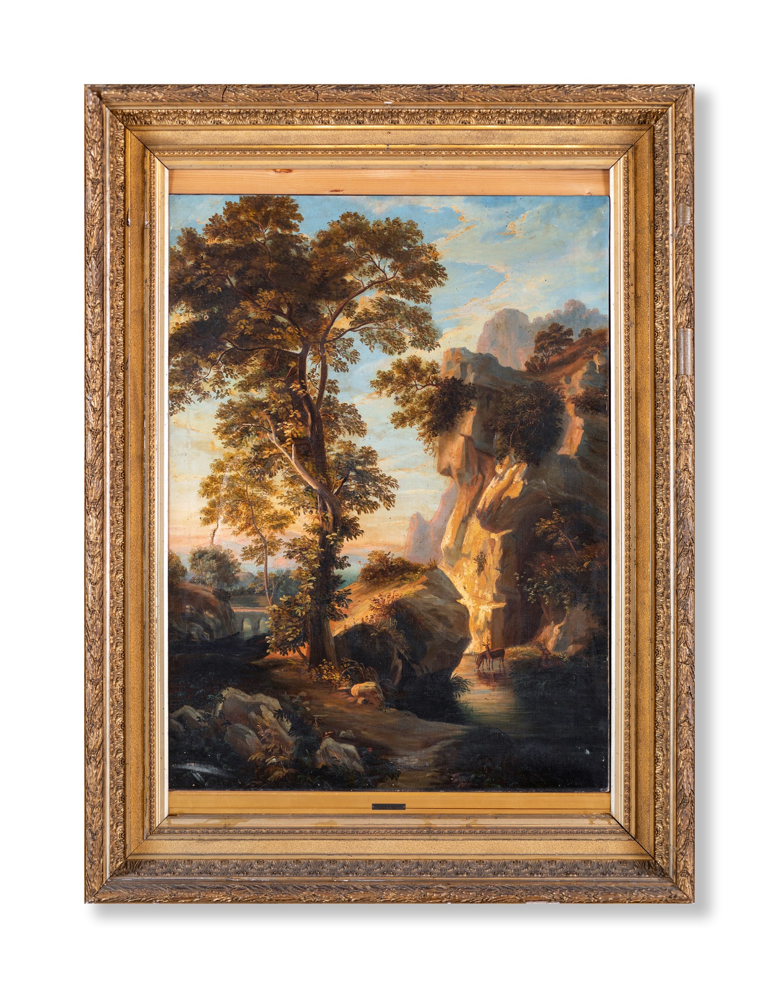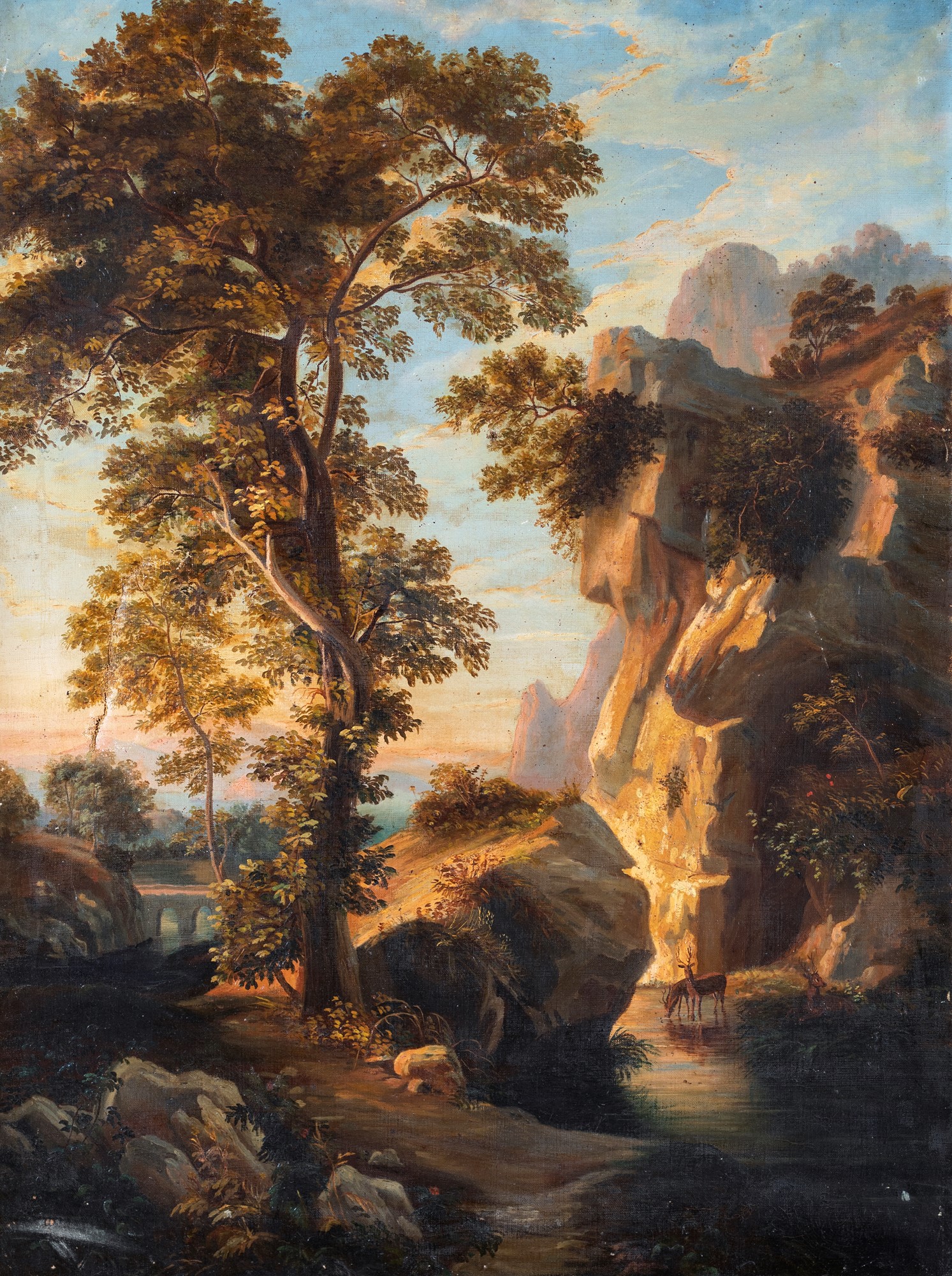 Pittore degli inizi del XIX secolo Paesaggio boschivo olio su tela cm 106x79