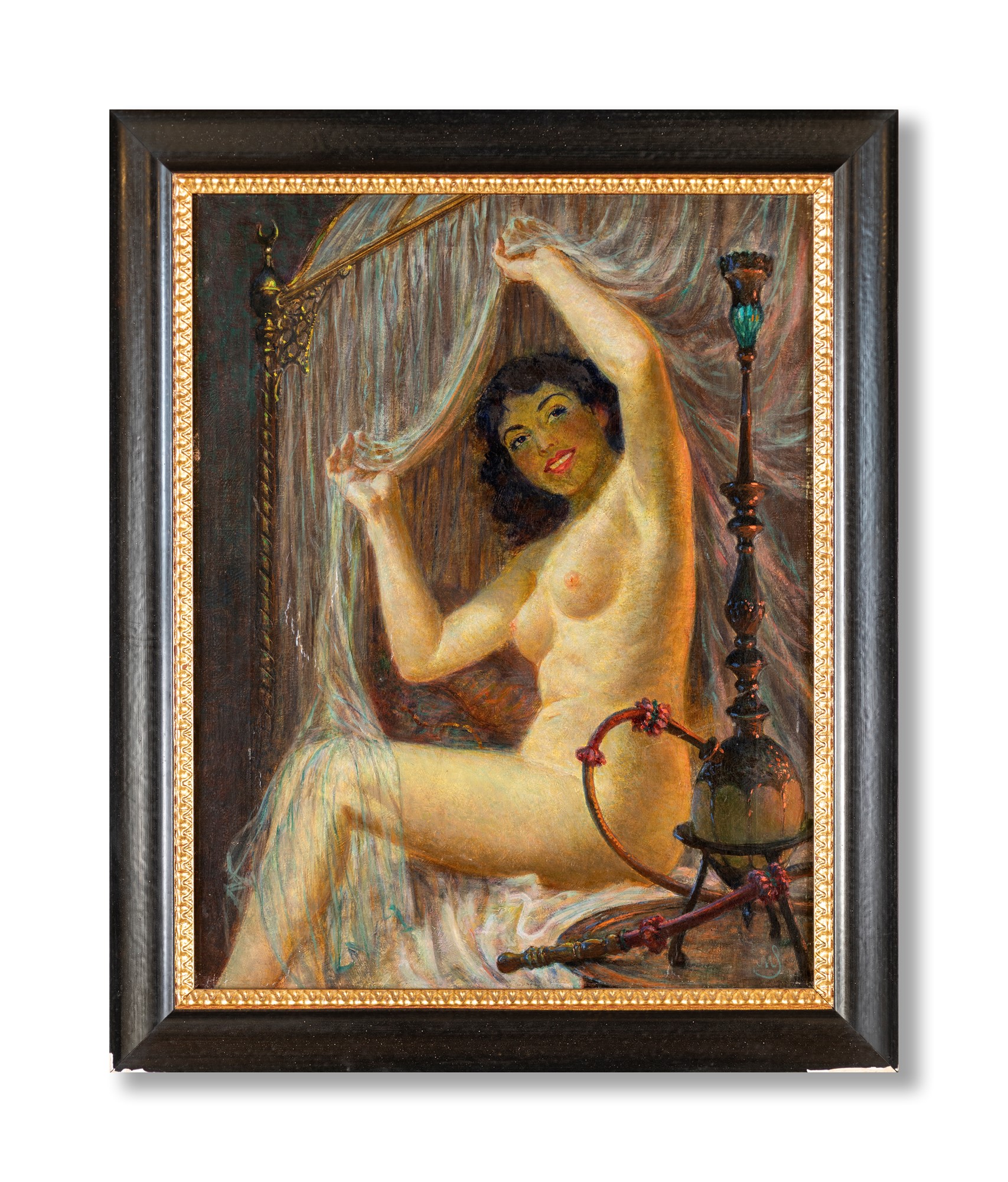 Pittore del XIX secolo Nudo di donna araba olio su tela cm 65x50
