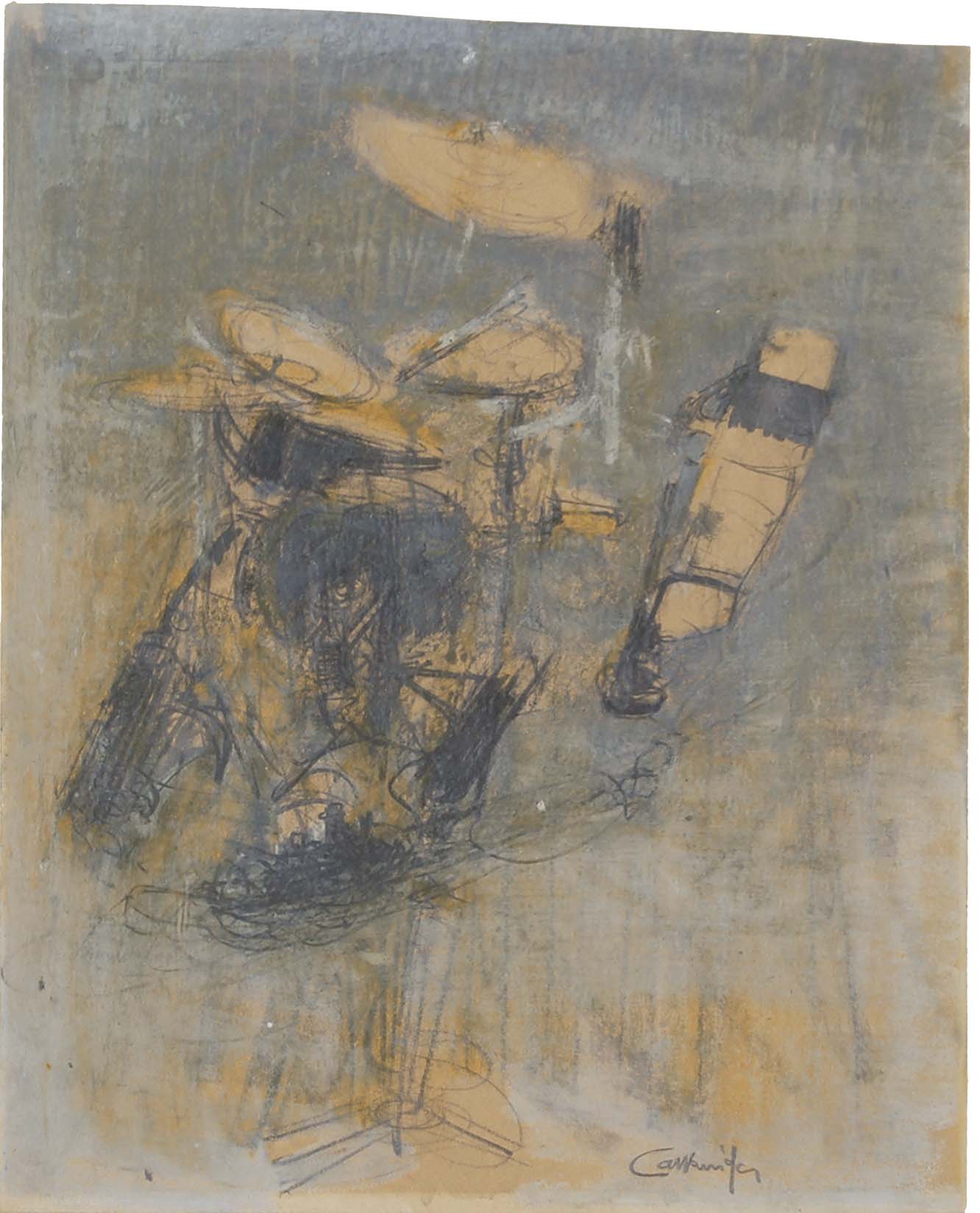 CAZZANIGA GIANCARLO Monza 1930 Batteria tecnica mista su carta 43x34,5 cm firma in basso a destra