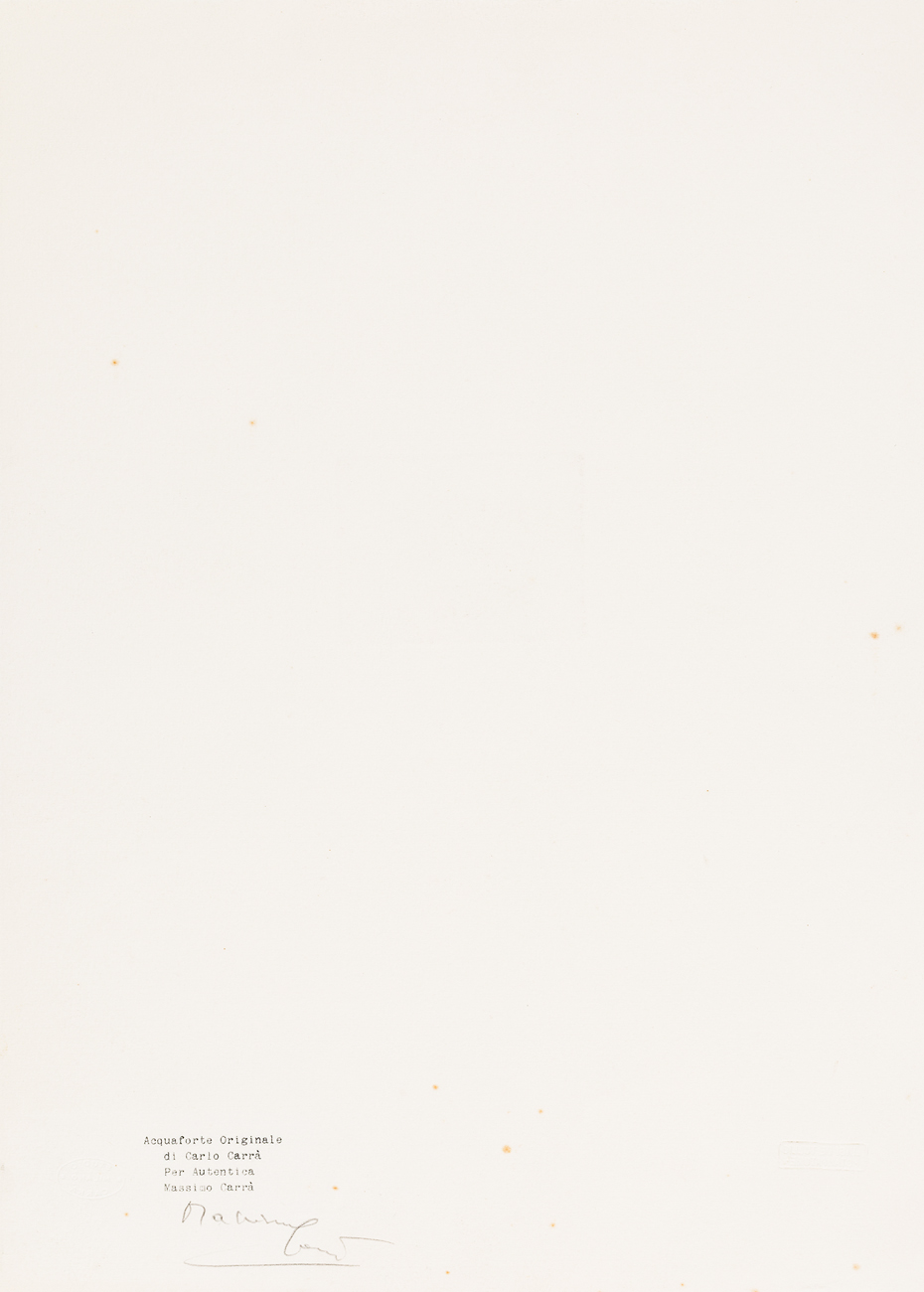 Edizione numerata e autenticata con firma autografa del figlio dell'Artista, Massimo Carrà, e convalidata dal timbro a secco della calcografia e dello Studio Carrà