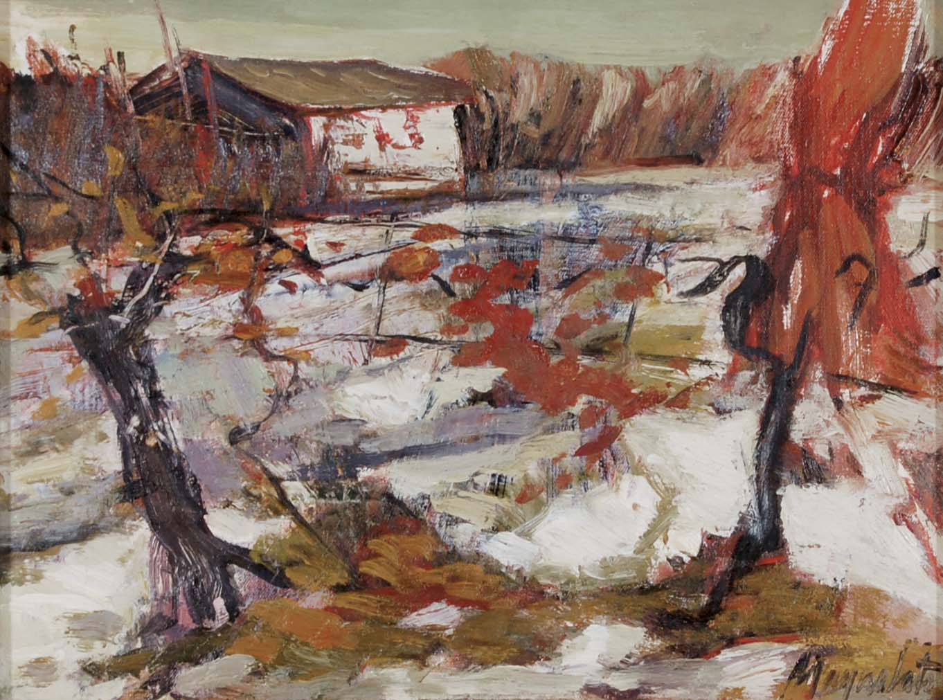 MAGNOLATO CESCO Noventa di Piave 1926 Paesaggio olio su cartone intelato 30x40 cm firma in basso a destra e al retro