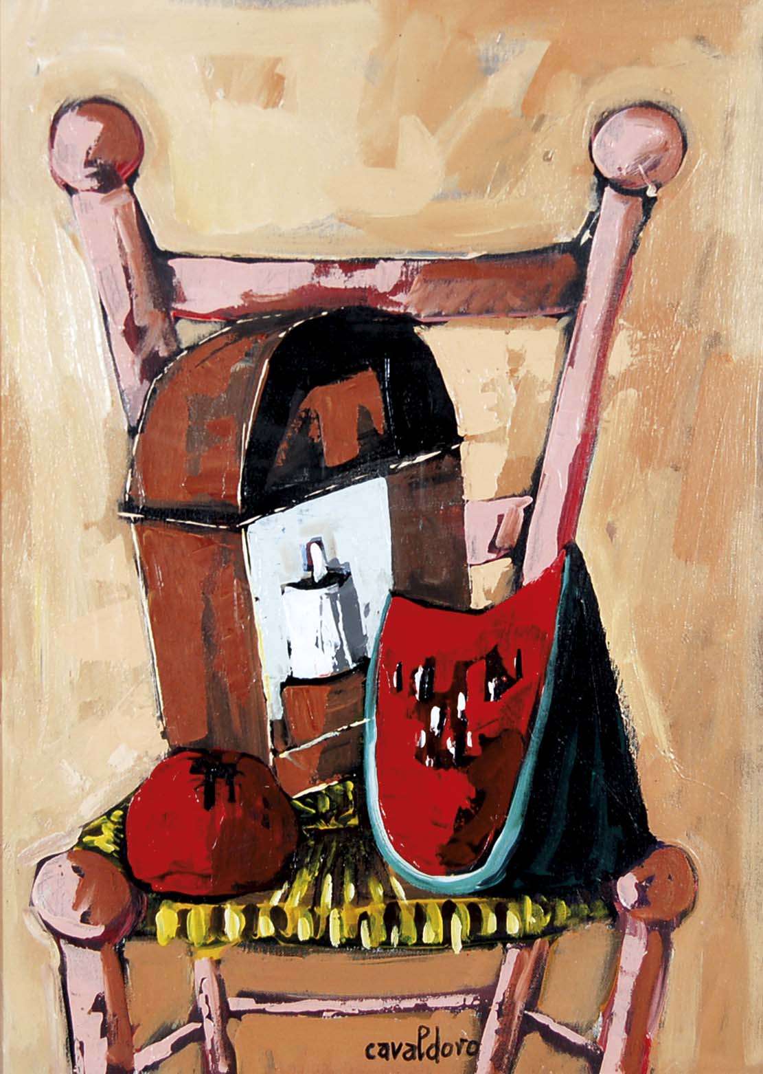 CAVALDORO ALFREDO Mestre 1924 - 1984 La sedia olio su tela 70x50 cm firma in basso al centro firma e titolo al retro provenienza etichetta e timbro dell'Autore al retro