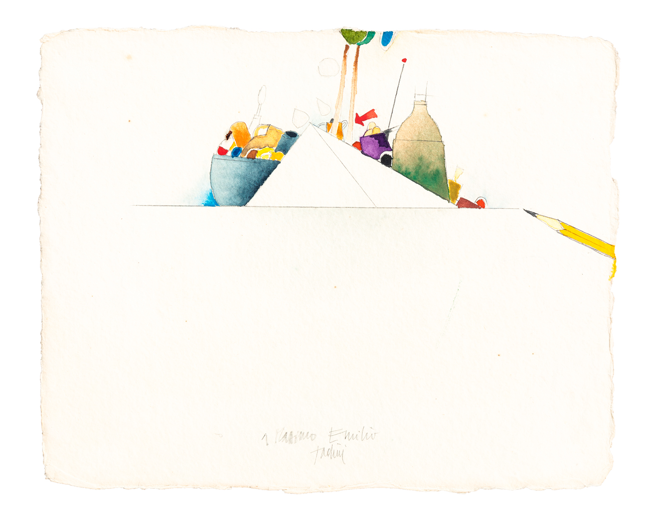 Acquerello e grafite su carta a mano