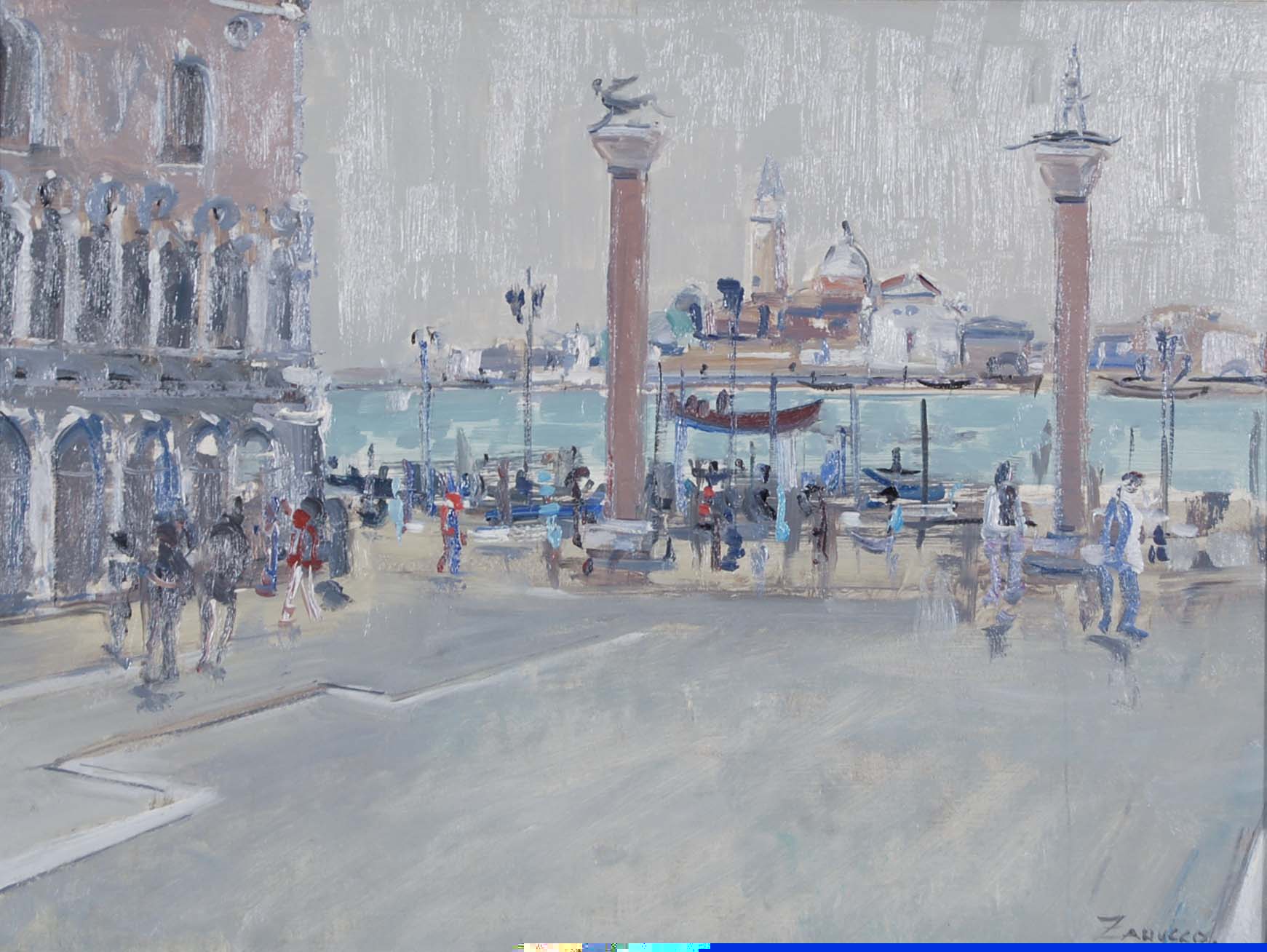 ZANUCCO PAOLO Venezia 1964 Piazza San Marco olio su tavola 30x40 cm firma in basso a destra firma e titolo al retro
