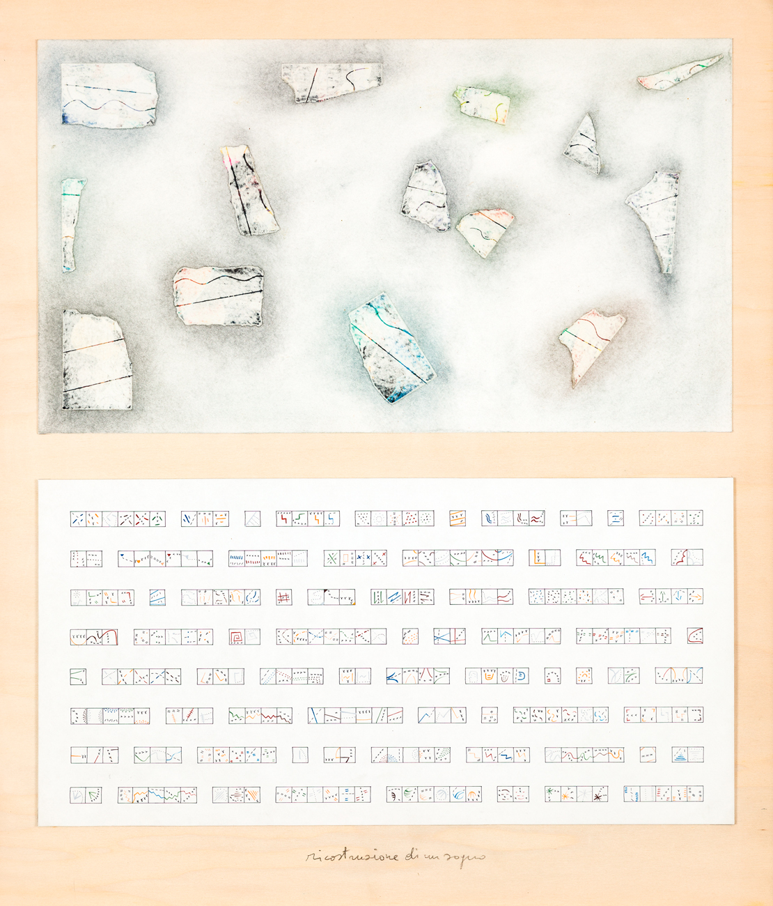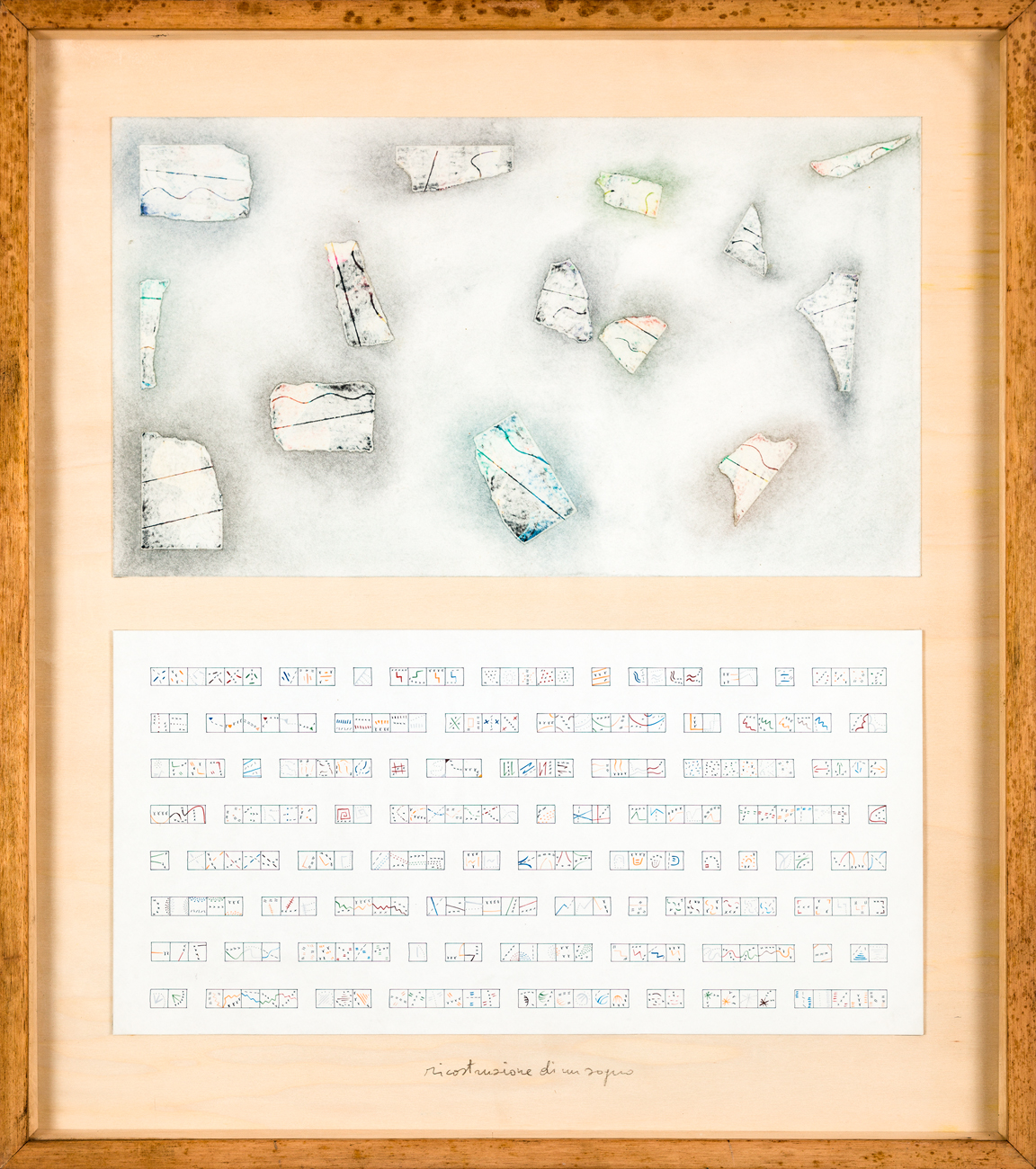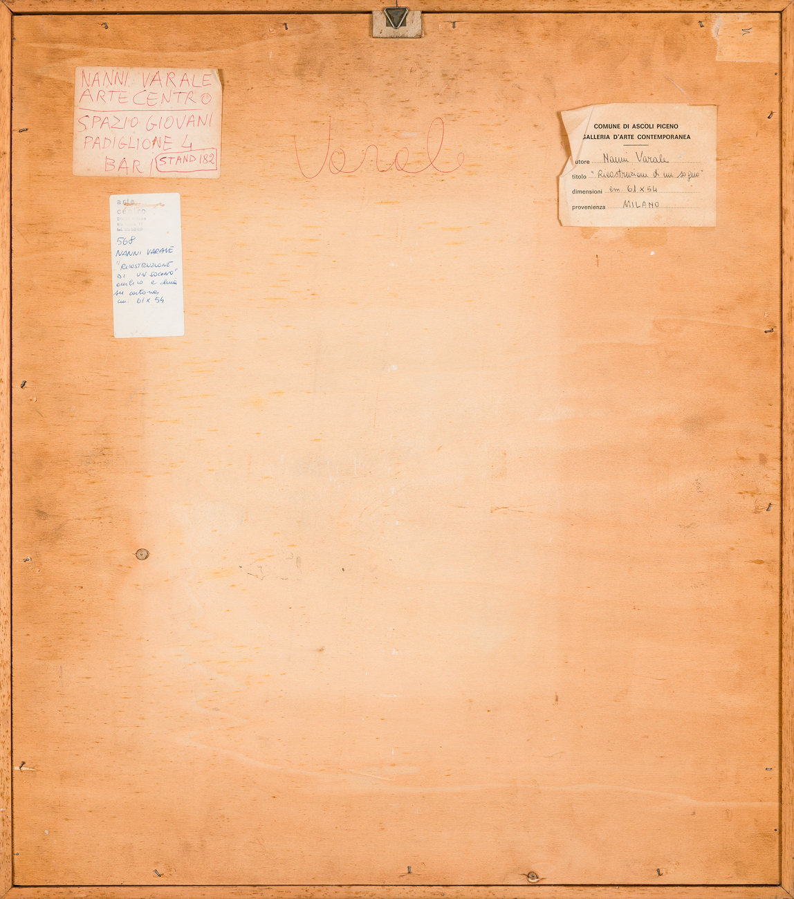 Etichetta della Galleria Arte Centro (MI) al retro della tavola protettiva