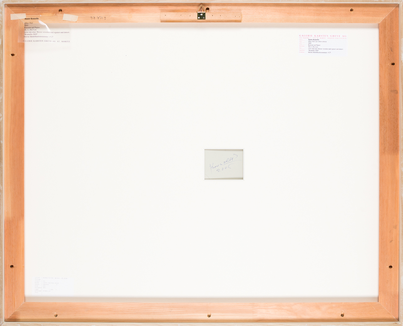 Etichetta della Galerie Karsten Greve AG (Saint Moritz) al retro del cartone protettivo
