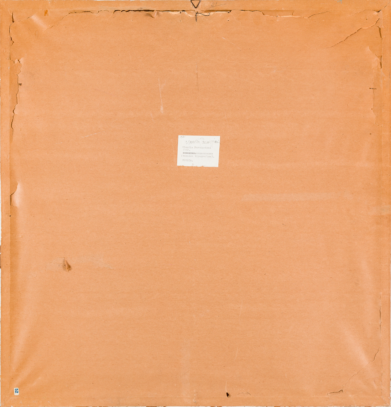 Etichetta dell'Artista con firma e numerazione al retro del cartone protettivo