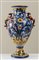 VASO IN MAIOLICA, XX secolo. Maiolica smaltata, con prese a foggia di drago....