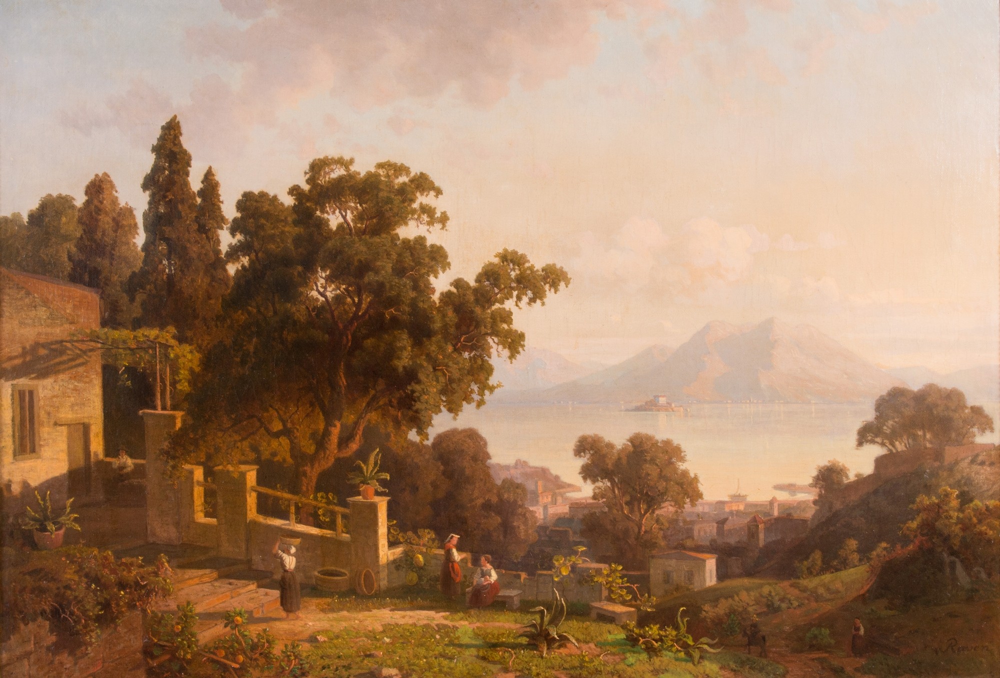 ERNST VON RAVEN (1816 - 1890). "Veduta del lago Maggiore". Olio su tela. Opera firmata in basso a destra Raven. Cm 75x109.