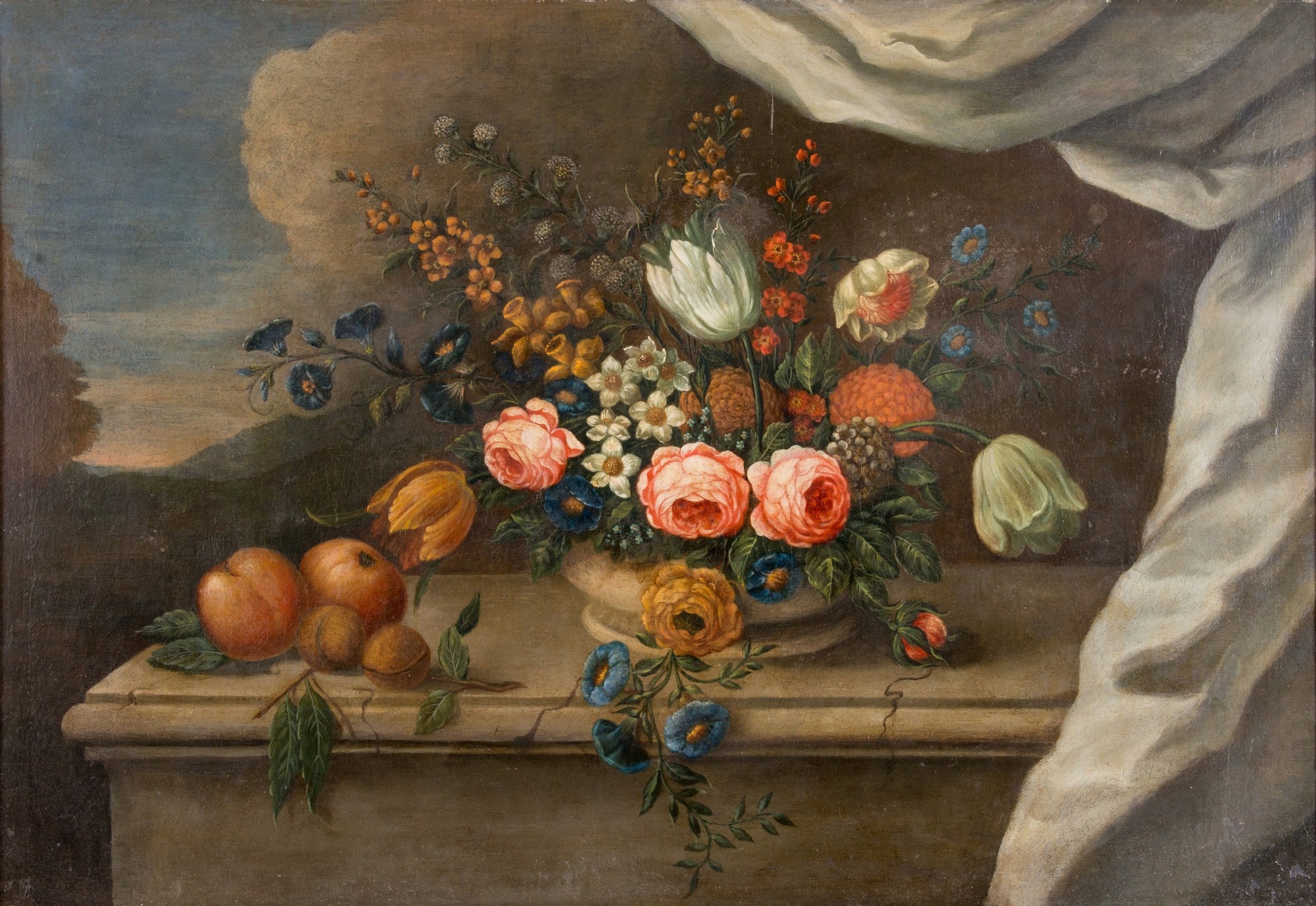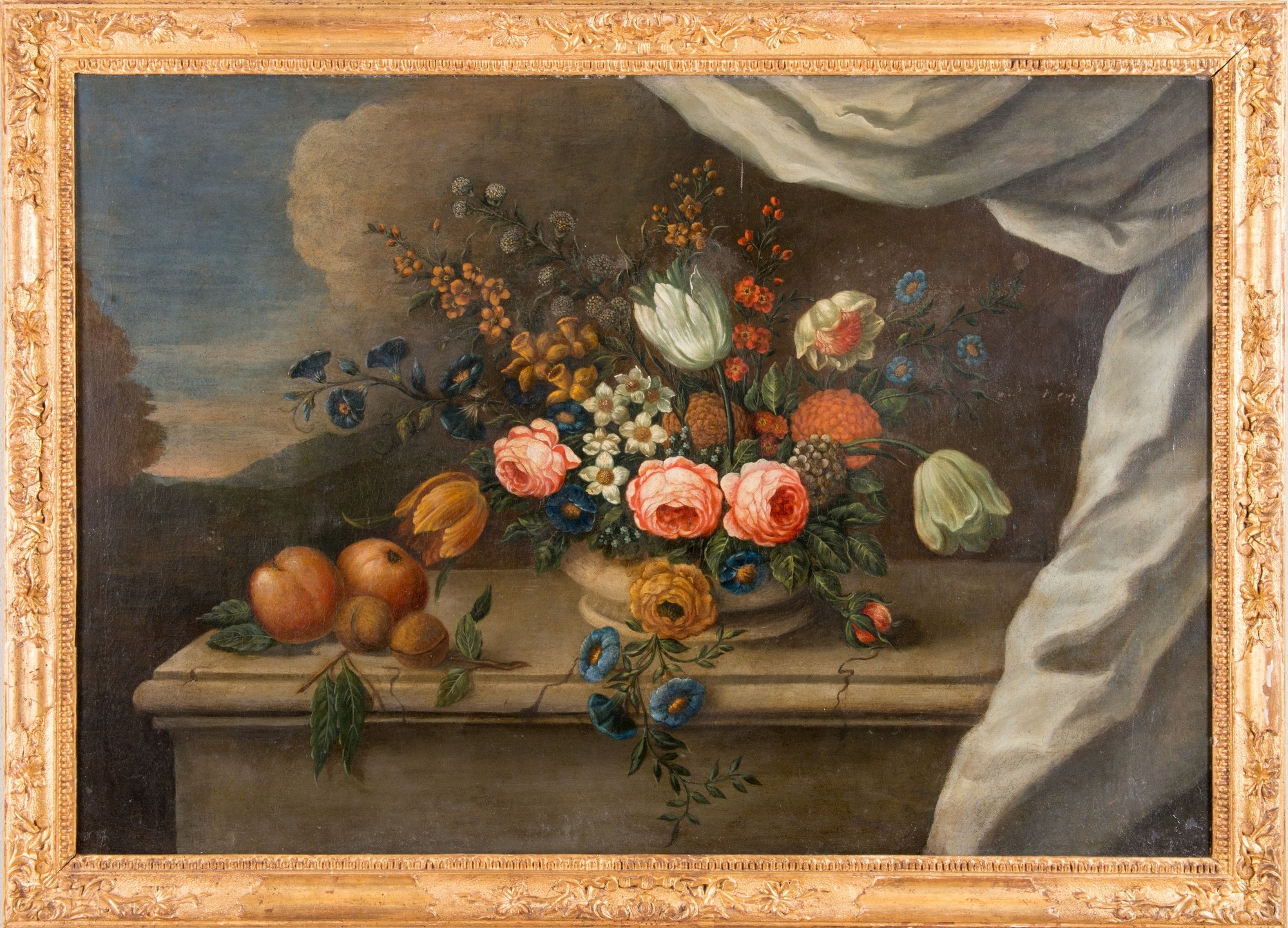 Artista anonimo, XIX sec. « Natura morta ». Olio su tela. H cm 76x110.