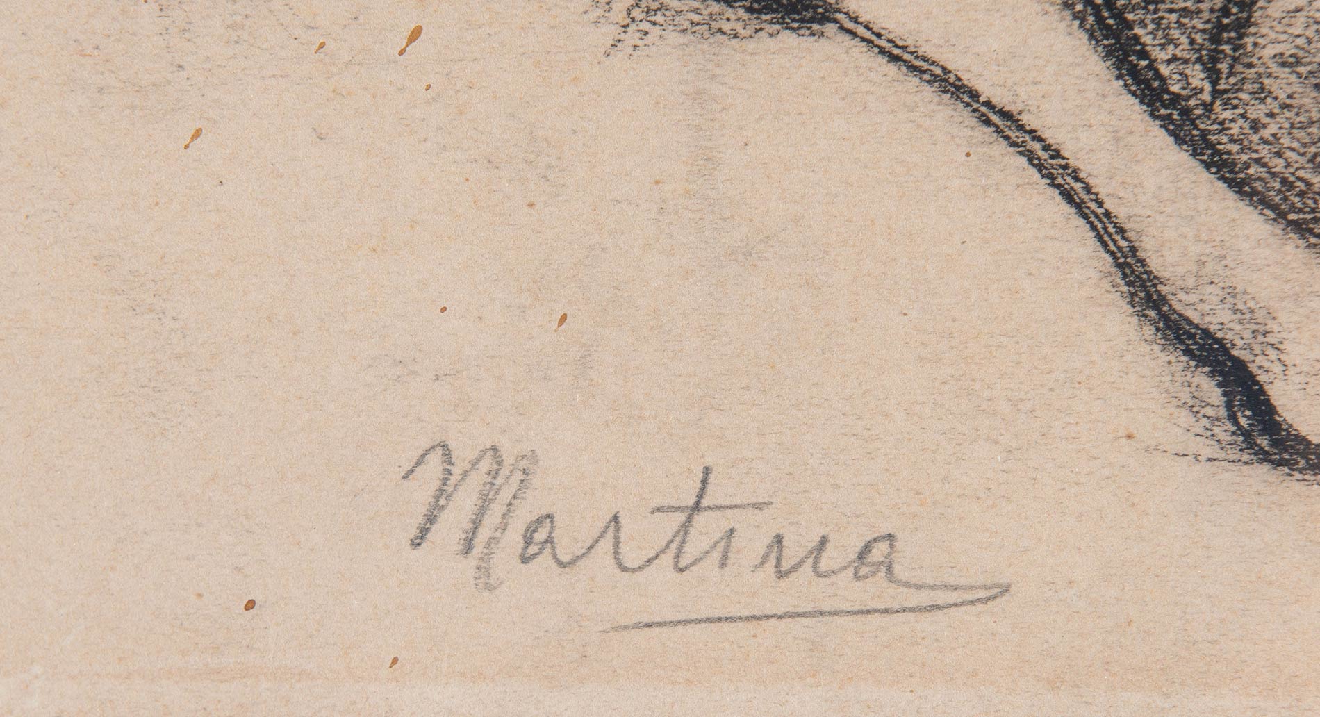 Umberto Martina (Dardago 1880 - Tauriano 1945), “Nudo maschile”. Matita su carta, firmato in basso al centro Martina, H cm 22x19