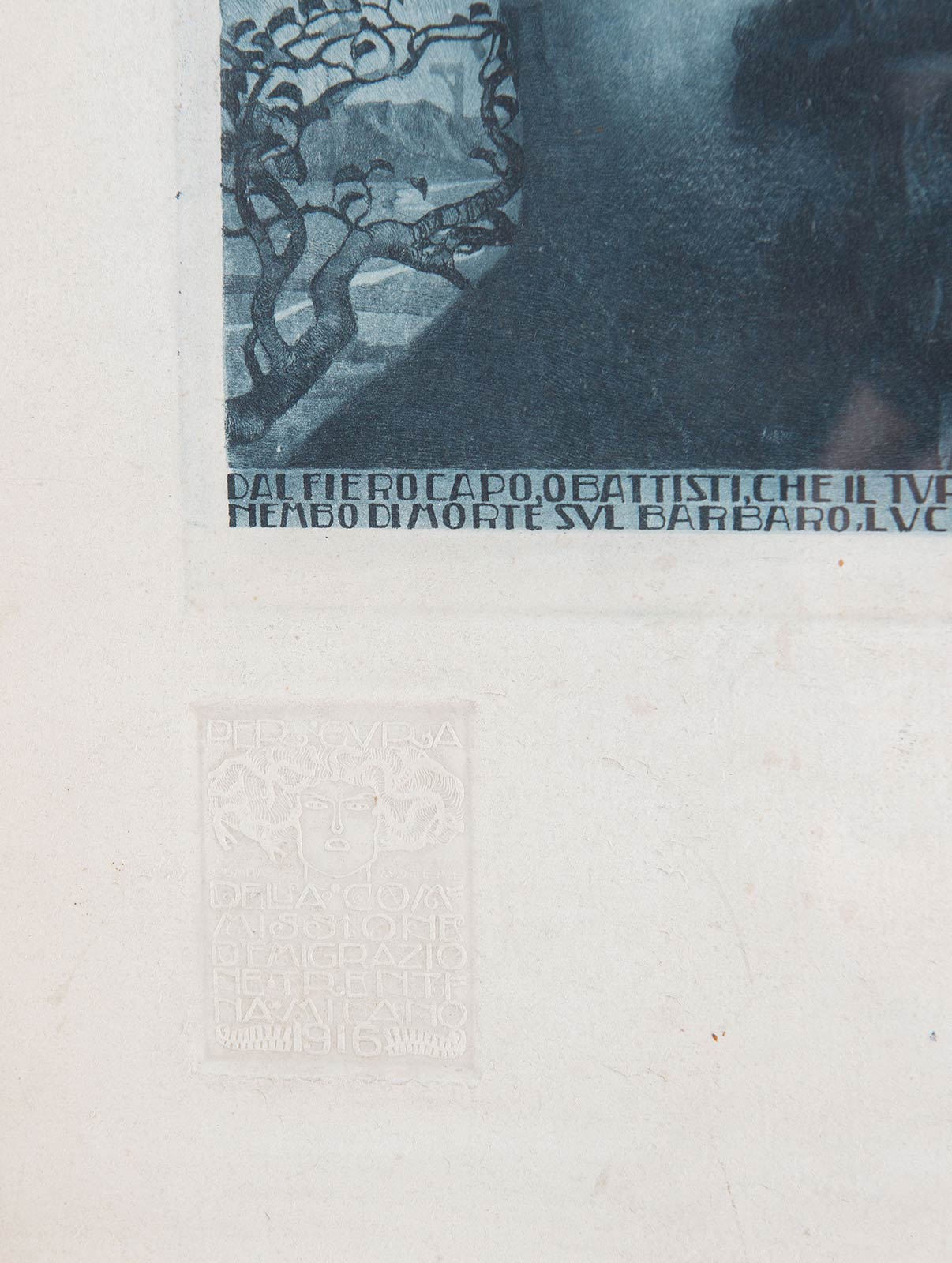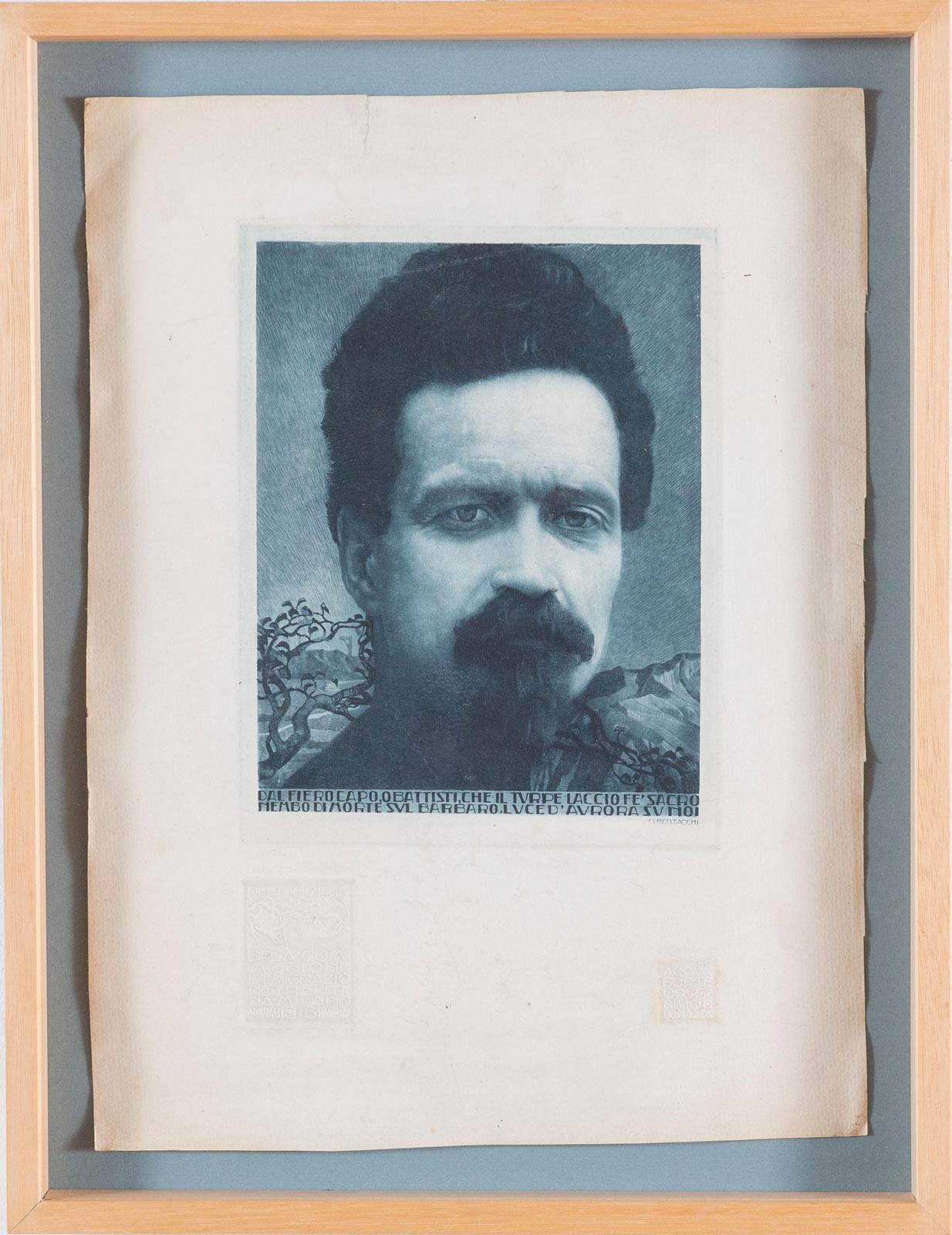 Luigi Bonazza (Arco 1877 - Trento 1965), “Ritratto di Cesare Battisti”, 1916. Acquaforte su carta, due timbri a secco e iscrizione, H cm 42.5x31.5