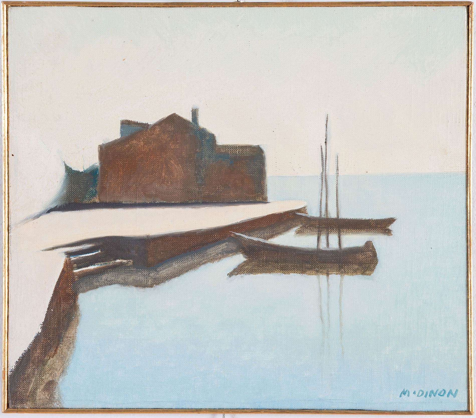 Mario Dinon (Venezia 1914 - Lido di Venezia 1967), “San Pietro”, 1961. Olio su tela, firmato M Dinon, al retro data a matita sul telaio 1961, H cm 28x32 Provenienza: Galleria Benvenuti, San Marco – Venezia.