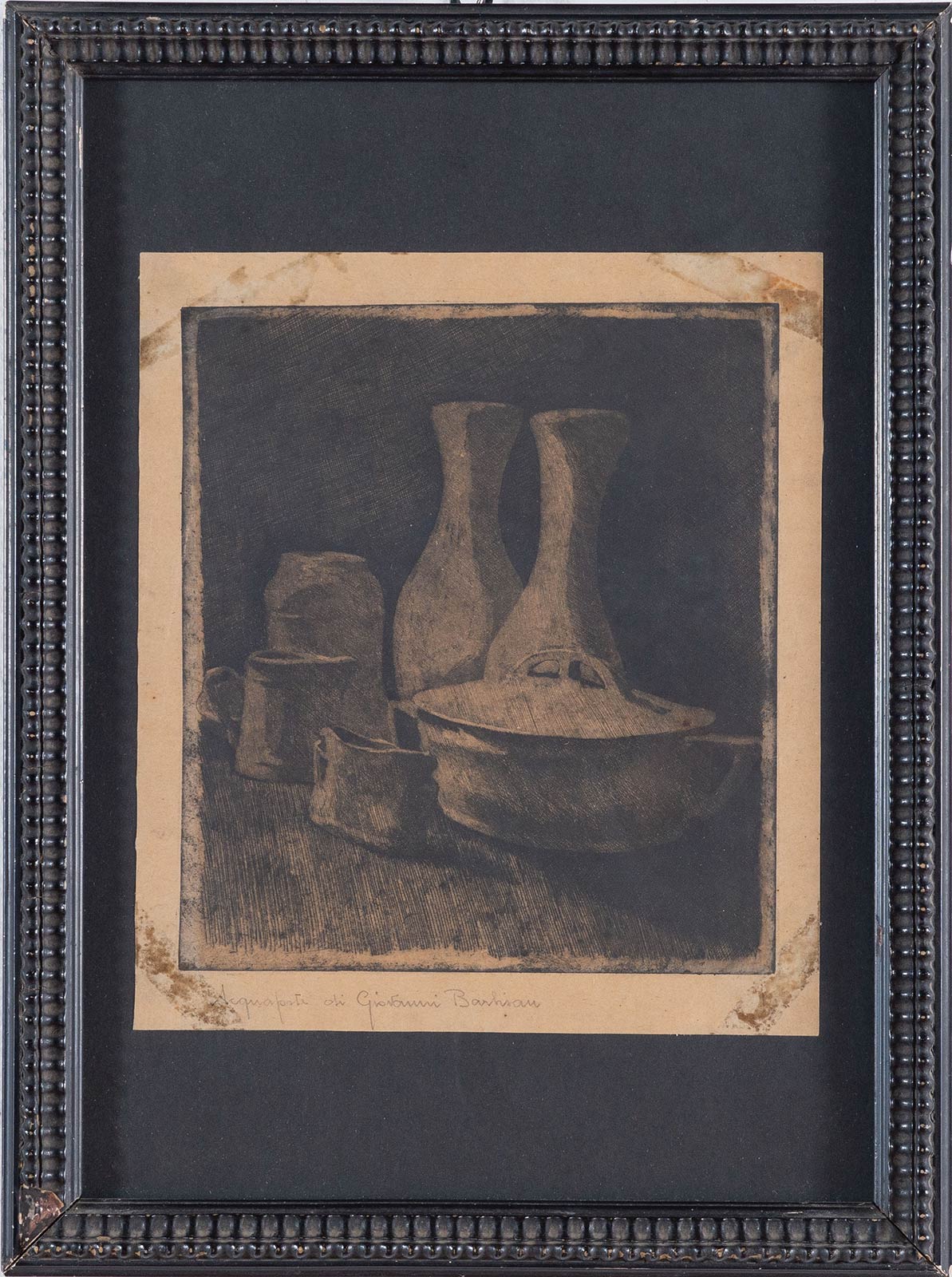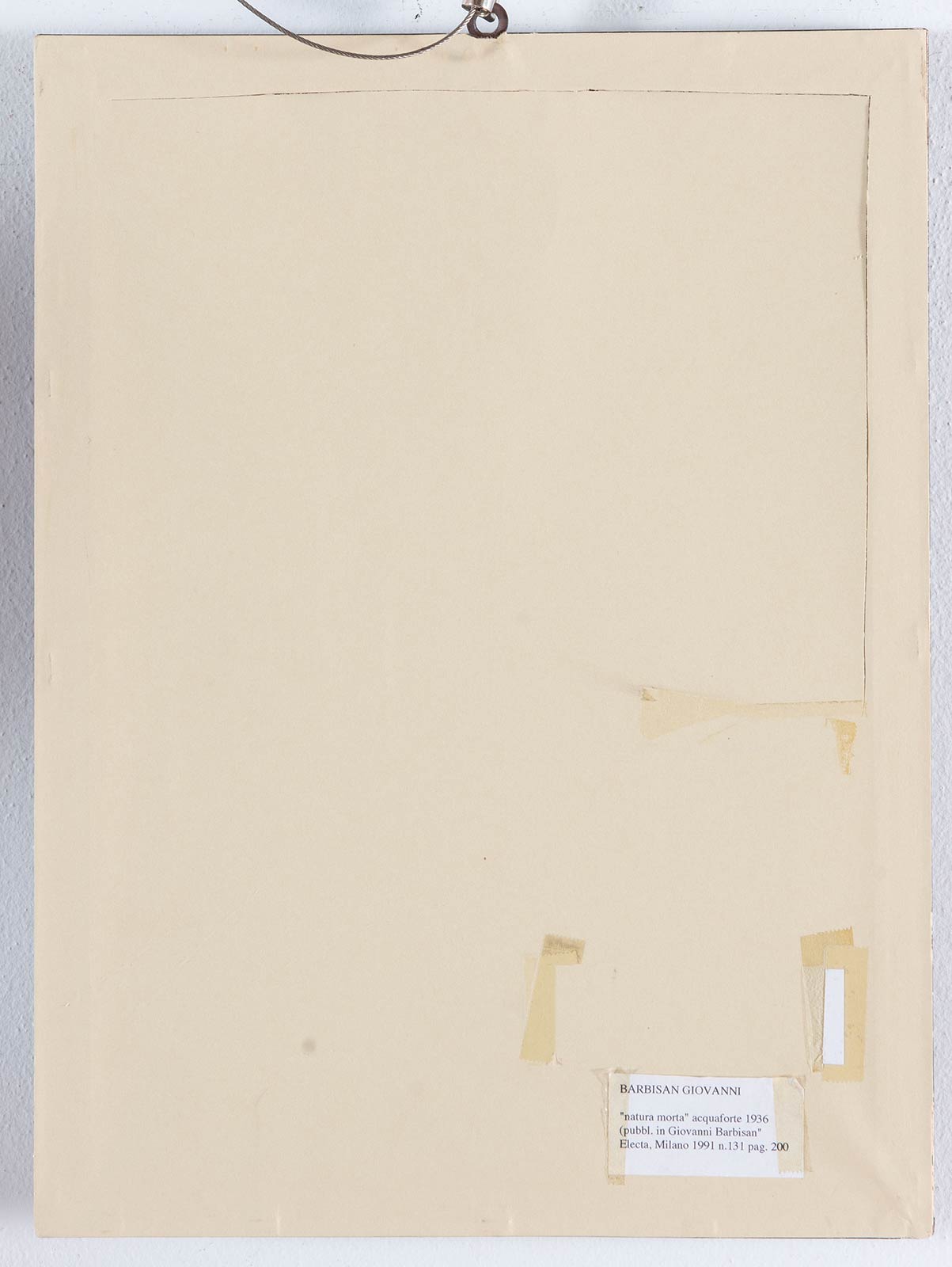 Giovanni Barbisan (Treviso 1914 - Orbetello 1988), “Natura morta”, 1936. Acquaforte su zinco, in basso a destra firma Acquaforte di Giovanni Barbisan, H cm 23x20.3 Bibliografia di riferimento: ‘Barbisan – incisioni 1933-1988 catalogo generale’, Marini editore, p. 68.