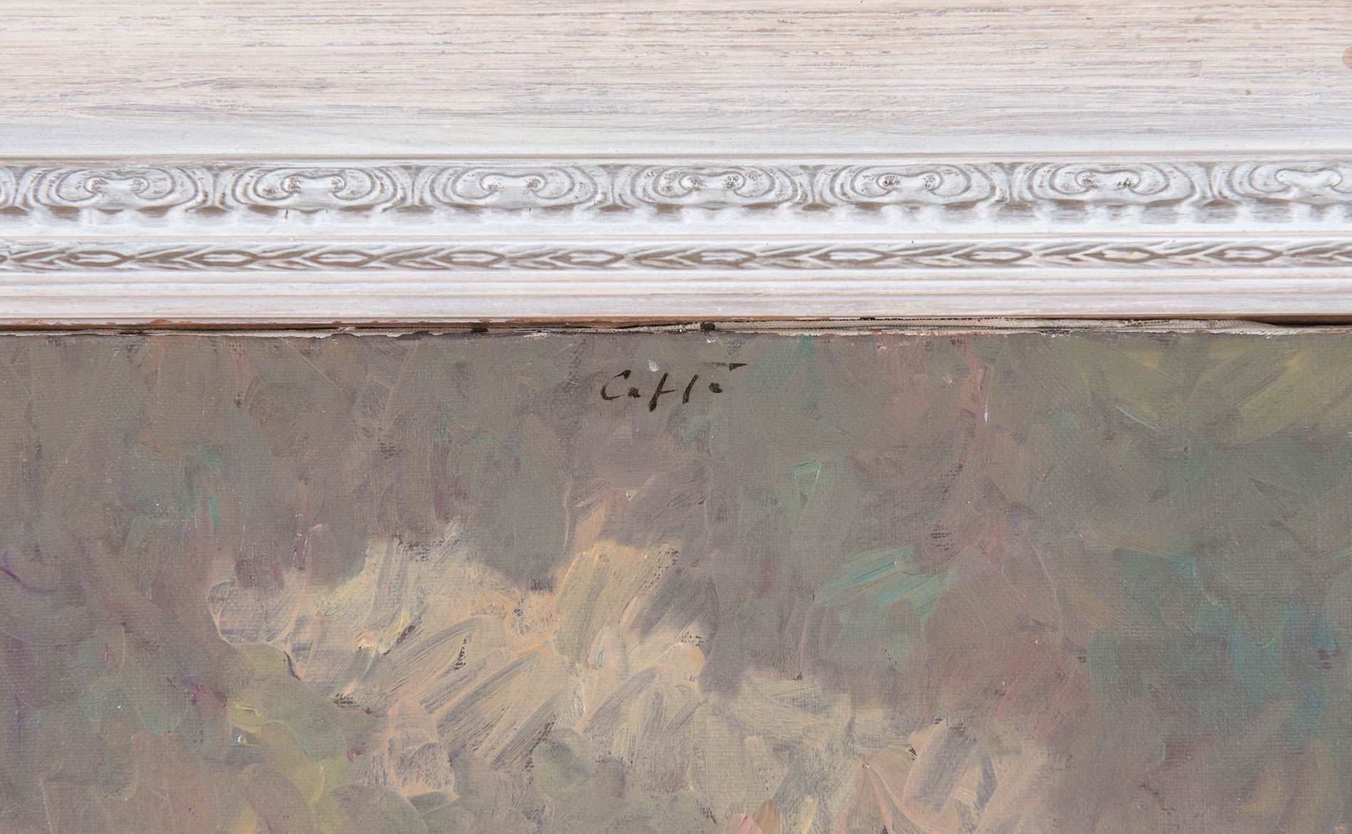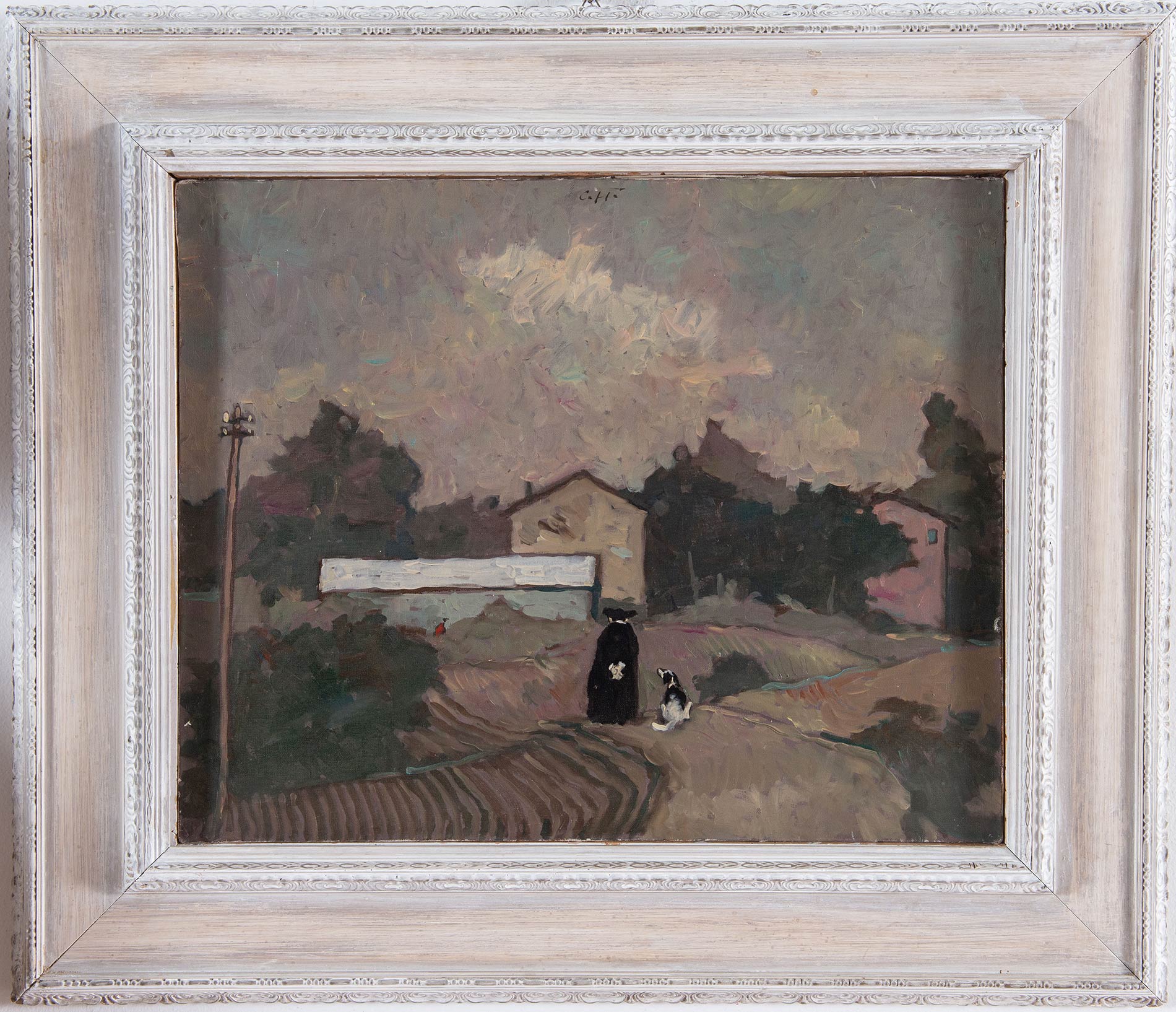 Nino Caffè (Alfedena 1908 - Pesaro 1975), “Prete e cagnolino”. Olio su tela, firmato in alto al centro Caffè, al retro reca numero N. 631, H cm 40x50 Al retro reca timbro Galleria Ravagnan – Venezia.