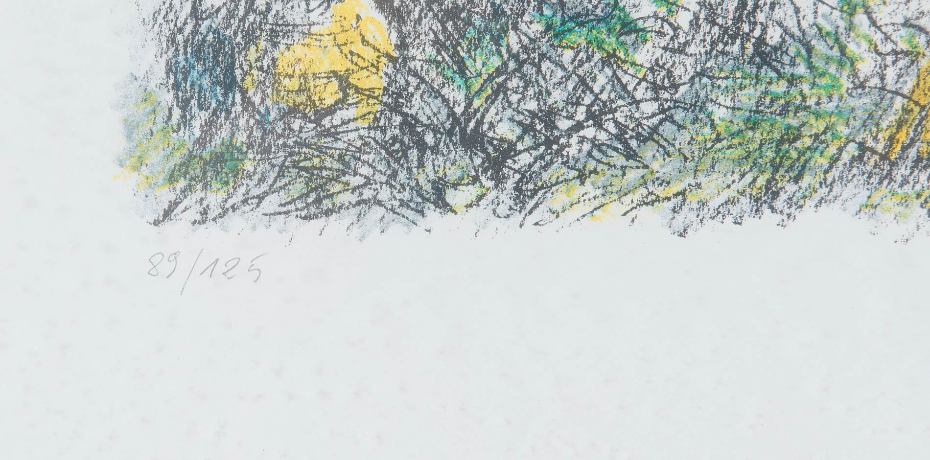 Michele Cascella (Ortona 1892 - Milano 1989), “Portofino”. Litografia a colori su carta, firmata in basso a destra M. Cascella, numero di tiratura in basso a sinistra 89/125, Foglio H cm 49.5x70 - Lastra H cm 30x45