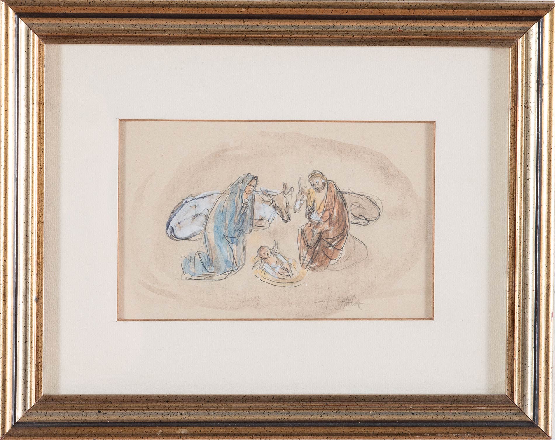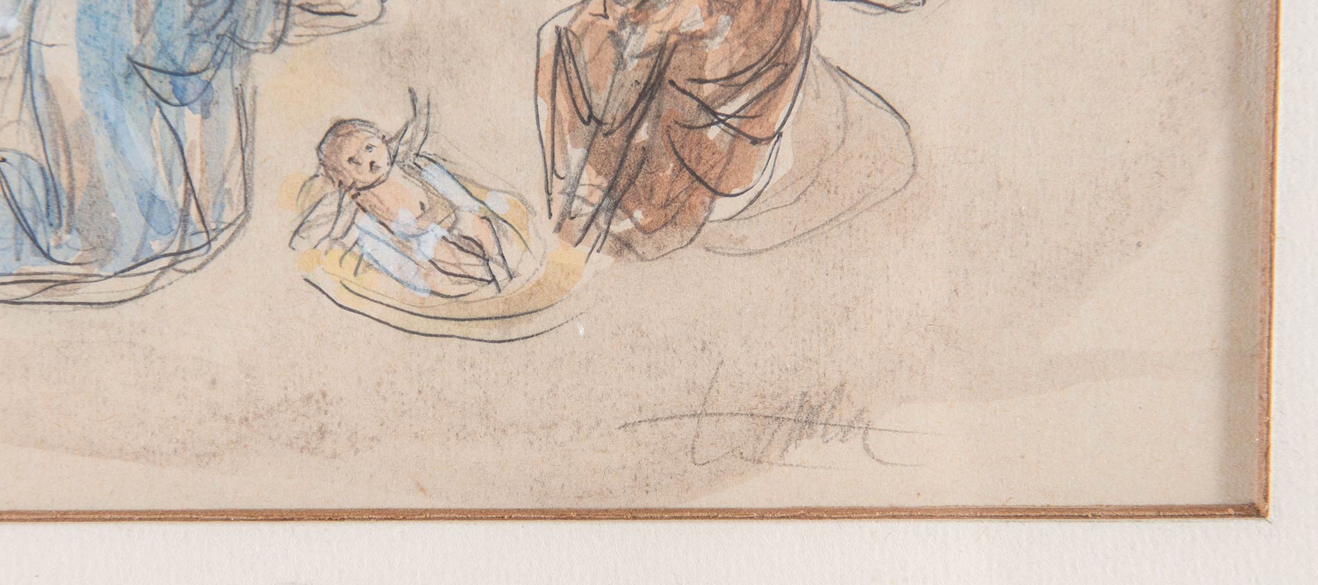Cleto Tomba (Castel San Pietro Terme 1898 - Bologna 1987), “Sacra Famiglia”. Tecnica mista su carta, firmata in basso a destra Tomba, H cm 11x17.5