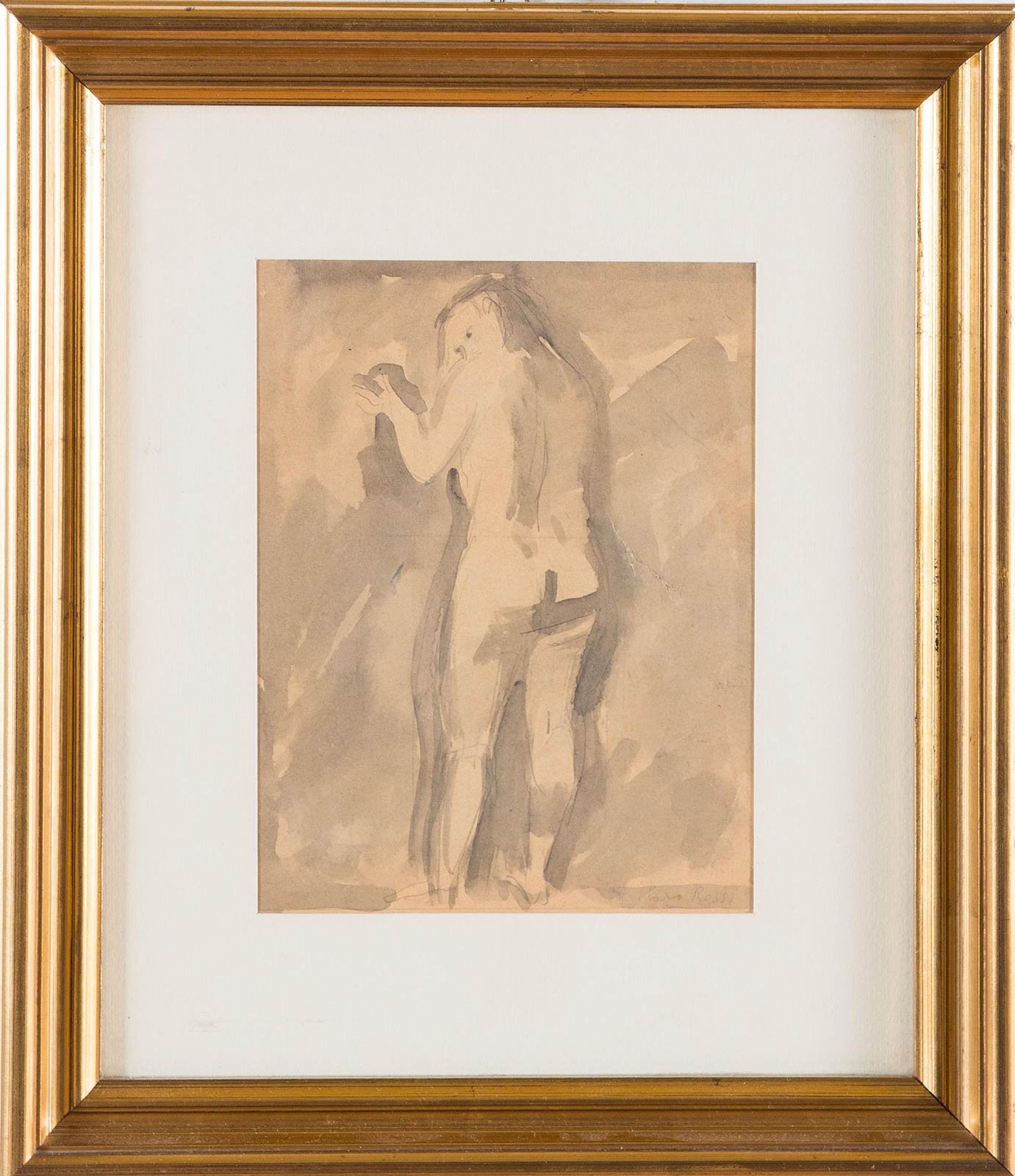 Ilario Rossi (Bologna 1911 - 1994), “Nudo” e “Donna seduta”. Inchiostro acquerellato su carta recto-verso, firmato in basso destra Ilario Rossi, Nudo H cm 17x13 - Donna seduta H cm 14x10