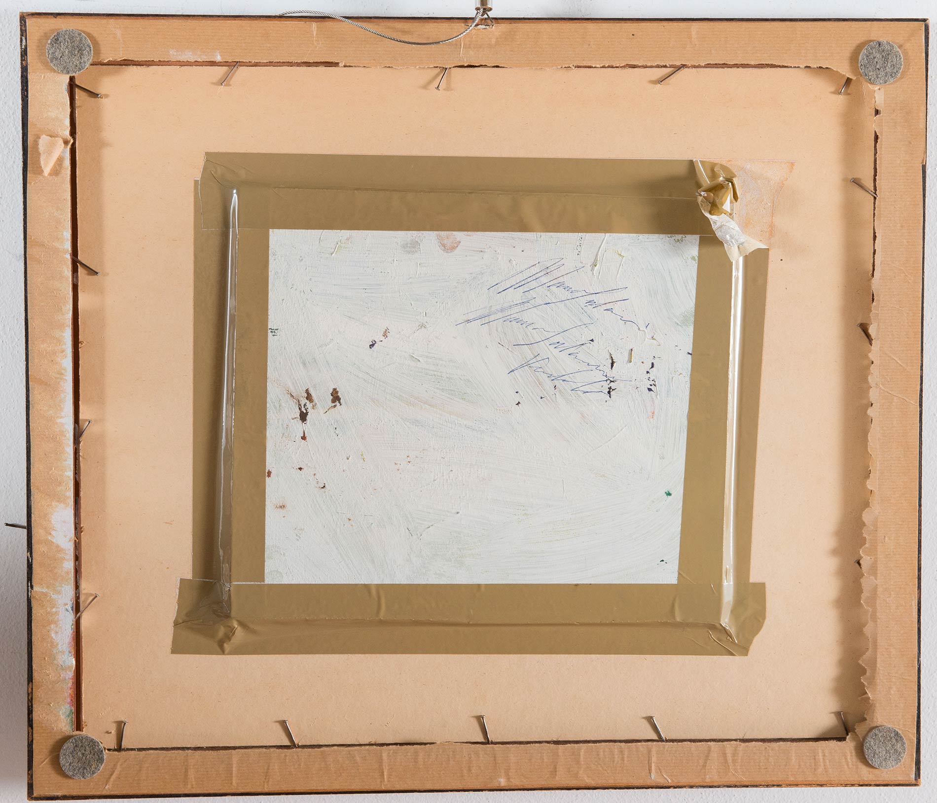 Michele Salemi (Brindisi 1942 - Bologna 2013), “Passeggio”, 1972. Olio su tavola in basso a destra Salemi, iscrizione al retro, H cm 25x31