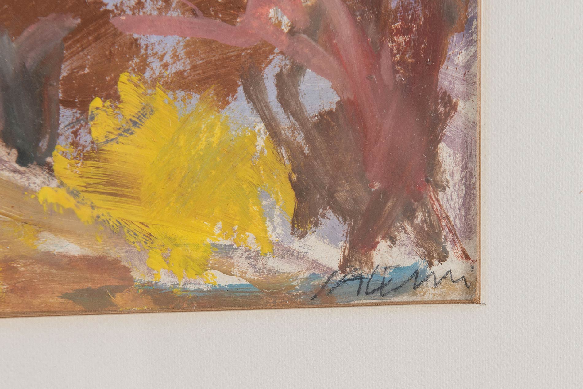 Michele Salemi (Brindisi 1942 - Bologna 2013), “Passeggio di S. Ruffillo”, 1972. Olio su cartone pressato, firmato in basso a destra Salemi, al retro firma, titolo e data ‘Michele Salemi/Passeggio di S. Ruffillo/1972’, H cm 36x48.5