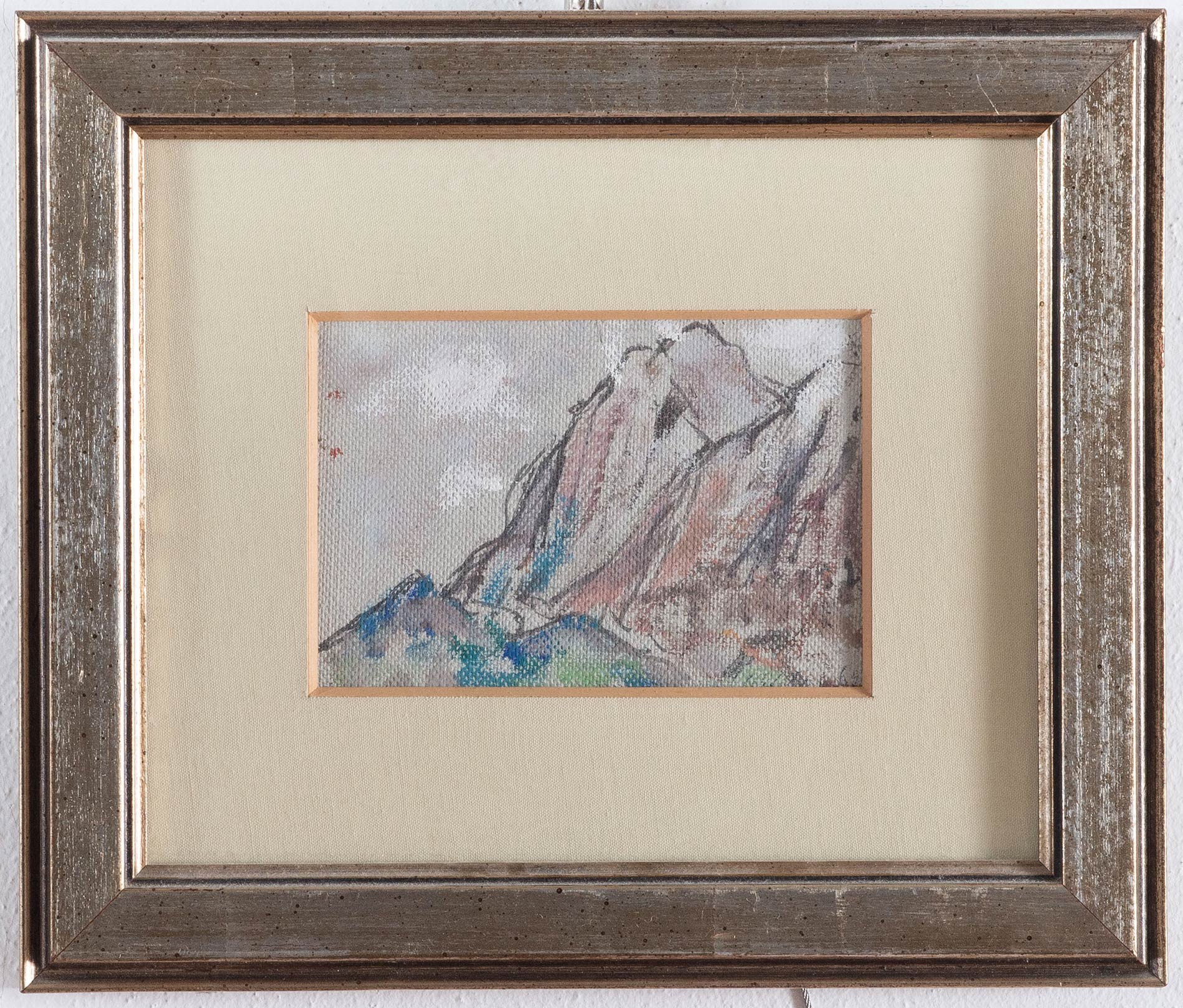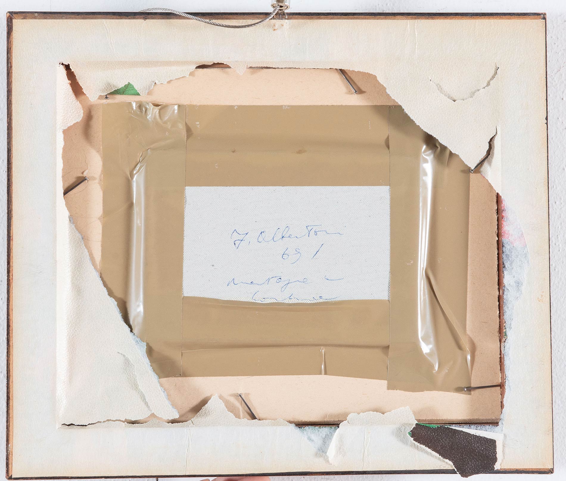 Filippo Albertoni (Reggio Emilia 1930 - Bologna 2011), “Montagna a Cortina”, 1969. Olio su cartone telato, firmato e datato F. Albertoni ‘69, al retro firma, data e titolo ‘F. Albertoni/69/Montagna a /Cortina’, H cm 11x16