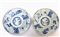 Coppia di piatti in porcellana bianca e blu decorati con draghi al centro e sce