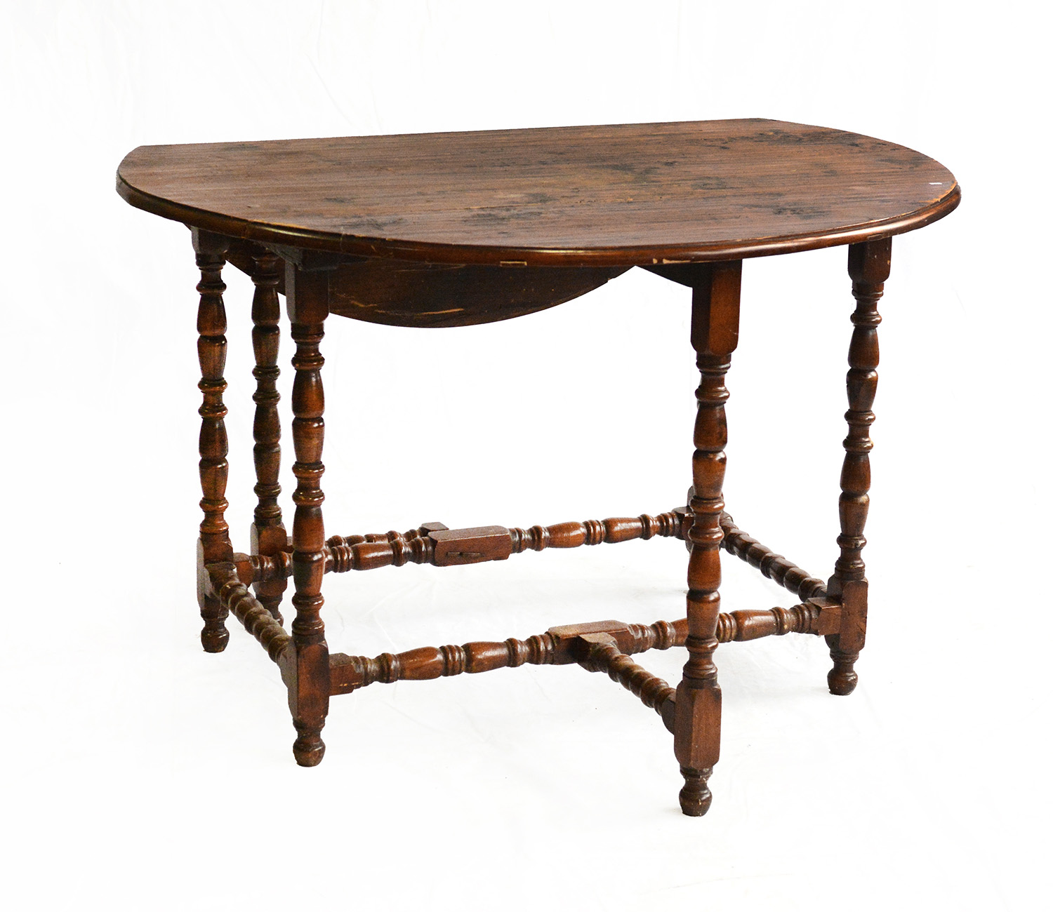 Antico tavolo ad alette, gambe e traverse tornite (cm 120x80x66) (difetti)