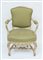 Poltroncina in legno laccato con braccioli e schienale mossi, gambe e fascia intagliate a fiori e foglie. Francia, fine secolo XVIII (difetti e restauri)