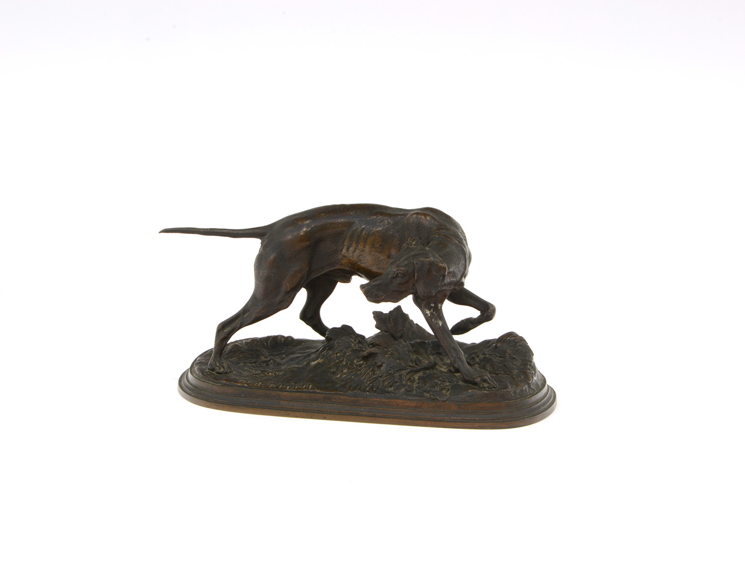D'Apres Pierre Jules Mene "Braque" scultura in bronzo (cm 12x22) Firmata alla ba