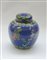 Potiche con coperchio in metallo cloisonné a decoro floreale su fondo blu. Cina