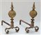Coppia di alari in bronzo e ghisa con puntali torniti e decorati alla base da m
