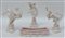 Manifattura fine sec. XIX. Parte di centrotavola in terraglia smaltata in bianco e rosa composto da tre elefanti da circo su basi e una vaschetta (difetti e mancanze)