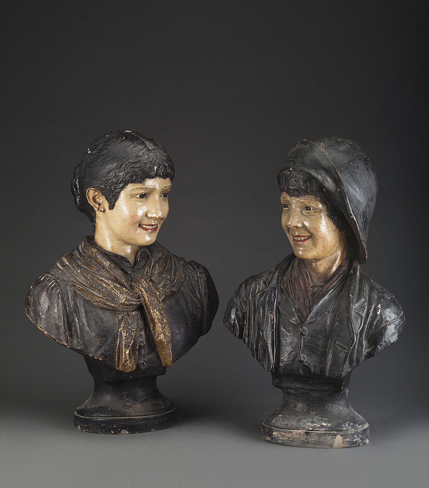 19th-centyury art “Young country boys” pair of terracotta busts (defects)
