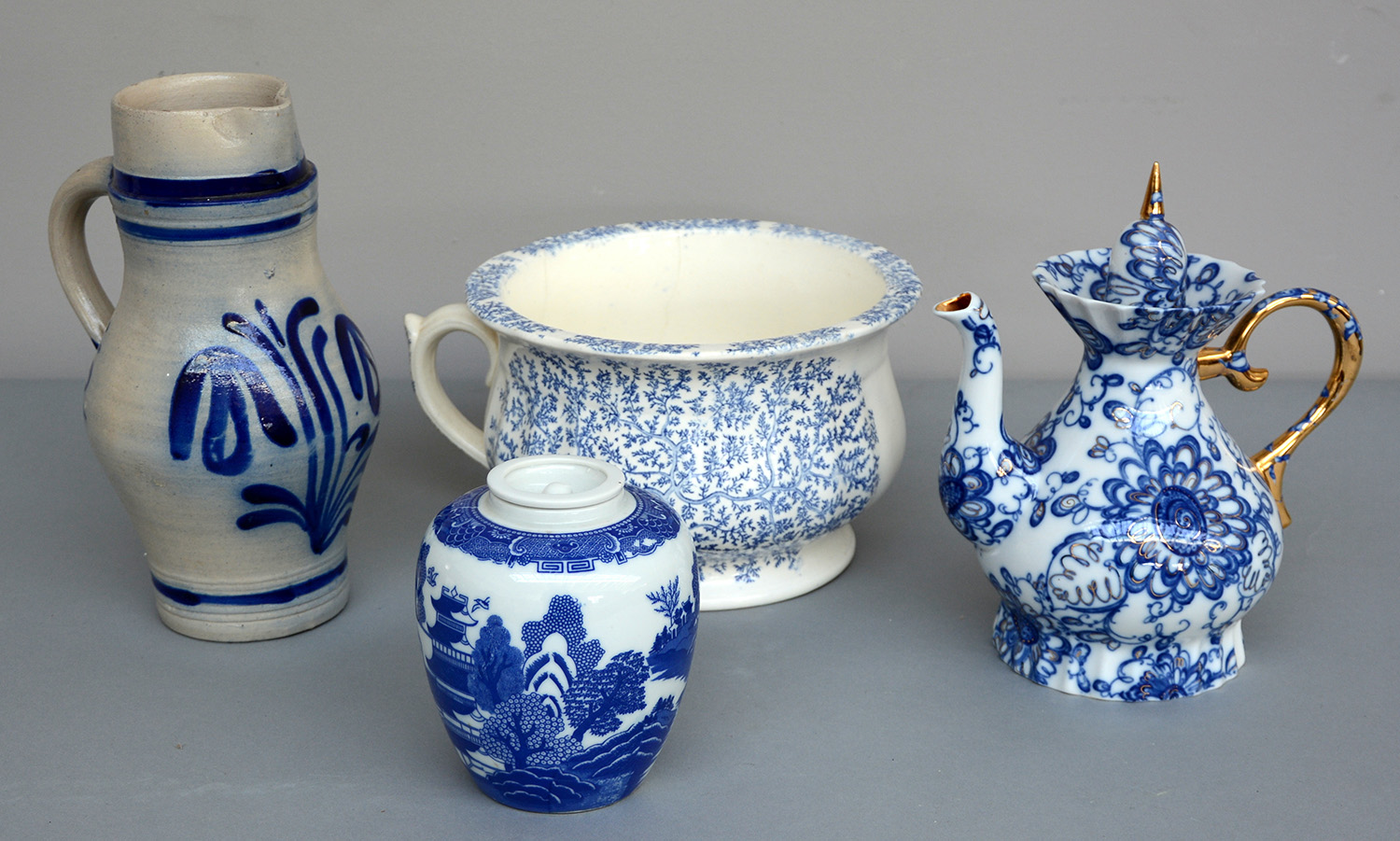 Lotto composto da un pitale, una brocca e due oggetti diversi in ceramica e porcellana