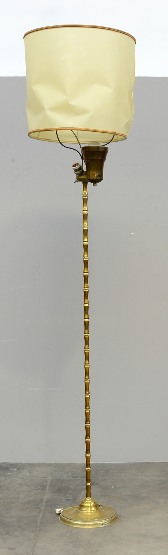 Piantana in ottone con fusto simulante bambù terminante a quattro fiamme (h cm 170) Marcata Malabert (difetti)