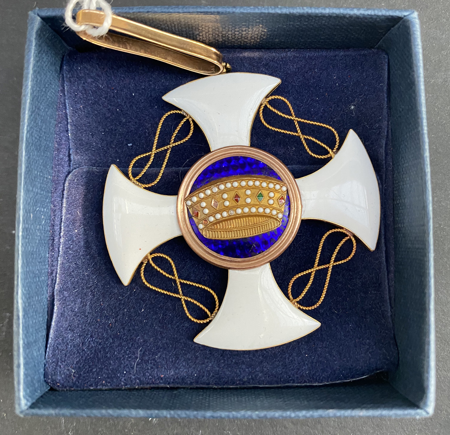 Insegna della corona d'Italia, croce da collo per commendatori in oro e smalti. Regno d'Italia, fine secolo XIX/inizi secolo XX