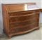 Ribalta in noce a fronte mossa con tre cassetti filettati e radicati, scarabatt