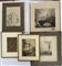 Lotto composto da tre acqueforti raffiguranti scorci di città, una china raffigurante olivi e un disegno a matita con edifici, autori e misure differenti (difetti)