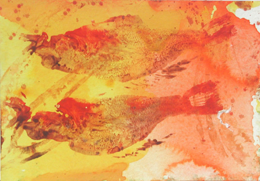 MASSIMO BARZAGLI (MARRADI 1960) Pesci 1996 olio su carta 12,5x17,5